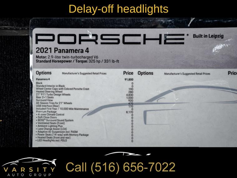 For more information on this 2021 Porsche Panamera, please call Varsity Autos Group at (516) 656-7022 or with the contact form on this page. This vehicle's vin number is WP0AJ2A76ML120687 and is recorded as being in stock at Varsity Autos Group at 500 Old Country Rd in Westbury. See all cars from this dealership.