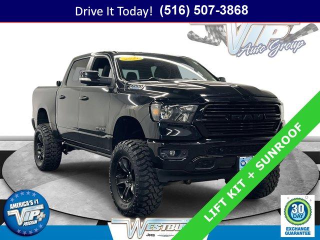 Confident 4WD traction meets refined everyday comfort in this 2021 Ram 1500 4D Crew Cab, powered by the smooth 3.6L V6 paired with an 8-speed automatic. Finished in Diamond Black Crystal Pearlcoat with a Black cloth interior, it blends a bold look with a quiet, comfortable cabin that keeps long drives relaxed and busy days easy. The roomy crew cab layout makes space for family, coworkers, and gear, while the 48V belt starter generator adds seamless stop-start refinement to your drive. With the Big Horn Level 2 Equipment Group and Night Edition styling, you get the useful conveniences you want and a clean, modern appearance that looks right at home anywhere in the Northeast.Smart tech and driver confidence come standard. Uconnect multimedia display with integrated voice command and Bluetooth keeps calls and audio simple, and steering wheel media controls let you keep your hands where they belong. ParkView Rear Back-Up Camera plus ParkSense Front and Rear Park Assist with Stop help you maneuver into tight spaces with fewer surprises. A Remote Start System gets the cabin ready before you step outside, and fully automatic headlights with front fog lights improve visibility when the weather turns. The Anti-Spin Differential Rear Axle helps channel 4WD power for better traction when one side gets slick, while Electronic Stability Control, Traction Control, 4-wheel disc brakes, ABS, Brake Assist, and front and rear anti-roll bars support stable, secure handling. Inside, enjoy a leather steering wheel, tilt and telescoping column, power windows and mirrors, air conditioning, illuminated entry, an overhead console, and a split-folding rear seat that adapts to cargo and passengers. Practical touches like a 115V auxiliary power outlet and a 400W inverter keep tools and devices charged on the go, and alloy wheels complete the confident stance & more.This truck shows 69,750 miles at the time of listing. The Crew Cab design, easy-to-clean materials, and thoughtful storage make it a smart choice for anyone who values comfort and capability in equal measure.VIP+ ProgramEnjoy unmatched value with our VIP+ Program. You get Unlimited Oil and Filter changes for 1 year, then included with every factory maintenance thereafter, plus Complimentary NYS Inspections, Complimentary Loaner Cars, and Complimentary 24/7 Rescue and Towing. These benefits are For Life and Transferable, so you can buy with confidence and keep driving with peace of mind.More About UsEvery vehicle is hand selected for quality and long-term reliability, and comprehensive reconditioning is completed prior to sale so you can purchase with confidence. For shoppers considering a certified option, our certified vehicles meet strict standards, including brake life no less than 50 percent. As a proud member of the VIP Auto Group serving our community since 1957, we stand by our promise: We Will Satisfy You!If you?re looking for a used truck in New York that handles weekday commutes and weekend projects, this Ram delivers comfort, power, and long-term value. 4WD, the Anti-Spin Differential Rear Axle, and Remote Start enhance winter confidence, while park assist and the rear camera make daily parking and tight driveways easier. It is a smart pick for anyone comparing an affordable used car or truck that is ready for work and family duty in changing Northeast weather.Shoppers in Long Island and beyond are invited to call now, schedule a test drive, or learn more at WestburyJeep.com where you can view up-to-date inventory and current pricing. This description and feature list are intended as a general overview and may vary by vehicle. Please confirm all details with our team.