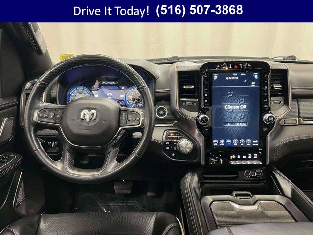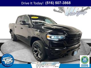 • One owner. Limited trim, Diamond Black Crystal Pearlcoat exterior and Black interior. Heated/Cooled Leather Seats, Moonroof, Nav System, 4x4, Bed Liner, Hitch, ANTI-SPIN DIFFERENTIAL REAR AXLE , ENGINE: 5.7L V8 HEMI MDS VVT ETORQUE, TRANSMISSION: 8-SPEED AUTOMATIC (8HP7. NIGHT EDITION, TECHNOLOGY GROUP, LIMITED LEVEL 1 EQUIPMENT GROUP, DUAL-PANE PANORAMIC SUNROOF. Approx. Original Base Sticker Price: $60,600*.KEY FEATURES INCLUDELeather Seats, Navigation, 4x4, Heated Driver Seat, Cooled Driver Seat.OPTION PACKAGESNIGHT EDITION Wheels: 22 x 9 Black Aluminum, Accent Color Premium Power Mirrors, Tri-Fold Tonneau Cover, Black Headlamp Bezels, Sport Performance Hood, Body Color Door Handles, Tires: 285/45R22XL BSW All Season, harman/kardonĀ® 19 Speaker Premium Sound, Black Exterior Truck Badging, Black Day Light Opening Moldings, Tow Hooks, Dual Exhaust w/Black Tips, Body Color Front Bumper, Black Grille Surround Texture 7 Chrome, Body Color Rear Bumper w/Step Pads, RAM Grille Badge - Black, Black Painted Exterior Mirrors Caps, LIMITED LEVEL 1 EQUIPMENT GROUP Adaptive Cruise Control w/Stop & Go, Surround View Camera System, Parallel & Perp Park Assist w/Stop, Ventilated Rear Seats, Pedestrian Emergency Braking, Lane Keep Assist, DUAL-PANE PANORAMIC SUNROOF LED Dome/Reading Lamp, Dome Dual LED Reading Lamp, TECHNOLOGY GROUP Head Up Display, LED CHMSL Lamp, Rearview Autodim Digital Display Mirror, ANTI-SPIN DIFFERENTIAL REAR AXLE, TRANSMISSION: 8-SPEED AUTOMATIC (8HP75) (STD), ENGINE: 5.7L V8 HEMI MDS VVT ETORQUE Active Noise Control System, Heavy Duty Engine Cooling, Delete Alternator, Dual Rear Exhaust w/Bright Tips, HEMI Badge, 18 Aluminum Spare Wheel. Ram Limited with Diamond Black Crystal Pearlcoat exterior and Black interior features a 8 Cylinder Engine with 395 HP at 5600 RPM*.EXPERTS CONCLUDEGreat Gas Mileage: 22 MPG Hwy.MORE ABOUT USWe hand select the finest automobiles possible, recondition as required so you do not have to worry about anything shortly down the road. Our Certified vehicles for example all have more than 50% brake life, most have brand new brakes installed front and rear and it does not end there.WESTBURY VIPAmericas #1 VIP Plus Program includes Complimentary Loaner Cars, UnlimitedOil & Filter changes for 1 yr. & then included with every factorymaintenance, Courtesy Shuttle to work, home or any other location, ExpressLube 30 minutes or less w/ no appointment necessary, Complimentary NYSI, 24/7 Rescue & Towing.