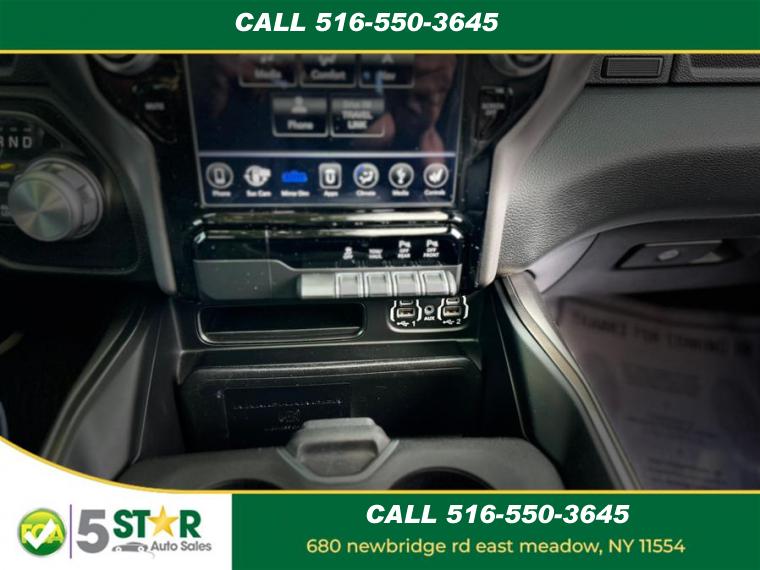ABS, 4-Wheel Disc Brakes, 8 Cylinder Engine, 8-Speed A/T, A/C, A/T, Adjustable Pedals, Adjustable Steering Wheel, Aluminum Wheels, AM/FM Stereo, Automatic Headlights, Automatic Highbeams, Auxiliary Audio Input, Back-Up Camera, Brake Assist, Bucket Seats, Child Safety Locks, Cruise Control, Daytime Running Lights, Driver Air Bag, Driver Illuminated Vanity Mirror, Driver Adjustable Lumbar, Driver Vanity Mirror, Auto-Dimming Rearview Mirror, Stability Control, Fog Lamps, Four Wheel Drive, Front Collision Mitigation, Floor Mats, Conventional Spare Tire, Gasoline Fuel, Heated Front Seat(s), Heated Mirrors, Heated Steering Wheel, Integrated Turn Signal Mirrors, Intermittent Wipers, Keyless Entry, Keyless Start, Leather Steering Wheel, LED Headlights, MP3 Capability, Pass-Through Rear Seat, Passenger Air Bag, Passenger Air Bag Sensor, Passenger Illuminated Visor Mirror, Passenger Vanity Mirror, Power Door Locks, Power Mirror(s), Power Driver Seat, Power Folding Mirrors, Power Steering, Power Windows, Privacy Glass, Rear Bench Seat, Rear Defrost, Rear Head Air Bag, Requires Subscription, Satellite Radio, Front Side Air Bag, Front Head Air Bag, Smart Device Integration, Steering Wheel Audio Controls, Tire Pressure Monitor, Tires - Front Performance, Tires - Rear Performance, Traction Control, Tow Hitch, Trip Computer, Universal Garage Door Opener, Variable Speed Intermittent Wipers, Immobilizer, Bluetooth Connection, Auto On/Off Reflector Led Low/High Beam Daytime Running Auto High-Beam Headlamps w/Delay-Off, Black Dual Exhaust Tips, Black Grille w/Body-Colour Surround, Black Side Windows Trim, Body-Coloured Door Handles, Body-Coloured Front Bumper w/Body-Coloured Rub Strip/Fascia Accent, Body-Coloured Rear Step Bumper, Body-Coloured Side Mirrors w/Driver Auto Dimming, Convex Spotter and Turn Signal Indicator, Cargo Lamp w/High Mount Stop Light, Deep Tinted Glass, Exterior Mirrors w/Courtesy Lamps, Exterior Mirrors w/Turn Signals, Front Fog Lamps, Front License Plate Bracket, Full-Size Spare Tire Stored Underbody w/Crankdown, Galvanized Steel/Aluminum Panels, Headlights-Automatic Highbeams, Heated Exterior Mirrors, Laminated Glass, LED Brakelights, Power Folding Exterior Mirrors, Power Rear Window w/Defroster, Regular Box Style, Steel Spare Wheel, Tailgate Rear Cargo Access, Tailgate/Rear Door Lock Included w/Power Door Locks, Tires: 275/55R20 OWL All-Season, USB Mobile Projection, Variable Intermittent Wipers, Wheels: 20" x 9" Aluminum, 2 12V DC Power Outlets, 2 12V DC Power Outlets and 1 Interior 120V AC Power Outlet, 3 Rear Seat Head Restraints, 4-Way Adjustable Front Headrests, 4-Way Passenger Seat -inc: Manual Recline and Fore/Aft Movement, 8-Way Power Driver Seat -inc: Power Recline, Height Adjustment, Fore/Aft Movement and Cushion Tilt, 8.4" Touchscreen, Analog Appearance, Apple CarPlay Capable, Bucket Seats, Cab Mounted Cargo Lights, Compass, Cruise Control w/Steering Wheel Controls, Day-Night Auto-Dimming Rearview Mirror, Delayed Accessory Power, Driver And Passenger Visor Vanity Mirrors w/Driver And Passenger Illumination, Driver Information Centre, Fade-To-Off Interior Lighting, Front Centre Armrest w/Storage and Rear Centre Armrest, Front Facing Cloth/Vinyl Rear Seat, Front Heated Seats, Front Map Lights, Front Seatback Map Pockets, Full Carpet Floor Covering -inc: Carpet Front And Rear Floor Mats, Full Cloth Headliner, Full Floor Console w/Covered Storage, Mini Overhead Console, 2 12V DC Power Outlets and 1 Interior 120V AC Power Outlet, Garage Door Transmitter, Gauges -inc: Speedometer, Odometer, Voltmeter, Oil Pressure, Engine Coolant Temp, Tachometer, Oil Temperature, Transmission Fluid Temp, Engine Hour Meter, Trip Odometer and Trip Computer, Google Android Auto, GPS Antenna Input, Hands-Free Communication w/Bluetooth, Heated Steering Wheel, HVAC -inc: Underseat Ducts and Console Ducts, Illuminated Front Cupholder, Illuminated Locking Glove Box, Instrument Panel Bin, Dashboard Storage, Interior Concealed Storage, Driver / Passenger And Rear Door Bins, Interior Trim -inc: Deluxe Sound Insulation, Chrome Instrument Panel Insert, Chrome Door Panel Insert, Chrome Console Insert and Chrome/Metal-Look Interior Accents, Leather Steering Wheel, Manual Air Conditioning, Manual Tilt/Telescoping Steering Column, Metal-Look Gear Shifter Material, Outside Temp Gauge, Power 1st Row Windows w/Driver And Passenger 1-Touch Up/Down, Power 4-Way Driver Lumbar Adjust, Power Adjustable Pedals, Power Door Locks w/Autolock Feature, Power Rear Windows, Proximity Key For Push Button Start Only, Rear 60/40 Split Folding Bench Seat, Rear Cupholder, Redundant Digital Speedometer, Remote Keyless Entry w/Integrated Key Transmitter, Illuminated Entry and Panic Button, Seats w/Cloth Back Material, Sentry Key Immobilizer, Trip Computer, Valet Function, Vinyl Door Trim Insert, Vinyl/Cloth Front Bucket Seats (J7), 220 Amp Alternator, 3.21 Rear Axle Ratio, 4-Wheel Disc Brakes w/4-Wheel ABS, Front Vented Discs, Brake Assist, Hill Hold Control and Electric Parking Brake, 730CCA Maintenance-Free Battery, 789.3 Kgs Maximum Payload, 98.4 L Fuel Tank, Auto Locking Hubs, Block Heater, Class III Towing Equipment -inc: Hitch and Trailer Sway Control, Electric Power-Assist Steering, Electronic Transfer Case, Engine Oil Cooler, Engine: 5.7L HEMI VVT V8 w/FuelSaver MDS -inc: Active Noise Control System, Heavy-Duty Engine Cooling, HEMI Badge, 220 Amp Alternator, Front And Rear Anti-Roll Bars, GVWR: 3, 220 kgs (7, 100 lbs), HD Gas-Pressurized Shock Absorbers, Part And Full-Time Four-Wheel Drive, Short And Long Arm Front Suspension w/Coil Springs, Solid Axle Rear Suspension w/Coil Springs, Stainless Steel Exhaust, Trailer Wiring Harness, Transmission w/Driver Selectable Mode, Transmission: 8-Speed Automatic, ABS And Driveline Traction Control, Airbag Occupancy Sensor, Collision Mitigation-Front, Curtain 1st And 2nd Row Airbags, Dual Stage Driver And Passenger Front Airbags, Dual Stage Driver And Passenger Seat-Mounted Side Airbag