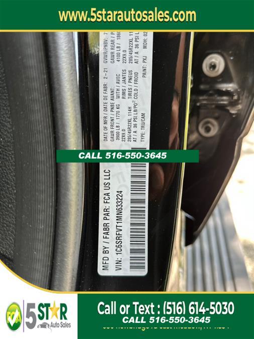 For more information on this 2021 RAM 1500, please call 5 Star Auto Sales at (516) 550-3645 or with the contact form on this page. This vehicle's vin number is 1C6SRFVT1MN633224 and is recorded as being in stock at 5 Star Auto Sales at 680 Newbridge Rd in East Meadow. See all cars from this dealership.