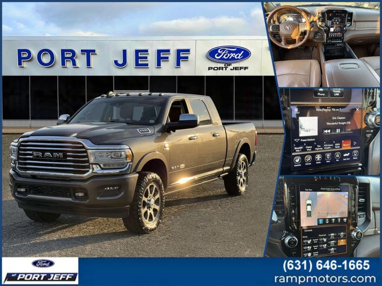 CARFAX 1-Owner. Heated/Cooled Leather Seats, Navigation, Trailer Hitch, iPod/MP3 Input, Heated Rear Seat, 4x4, Turbo Charged, Bed Liner, AUTO LEVEL REAR AIR SUSPENSION, ENGINE: 6.7L I6 CUMMINS TURBO DIESEL, SAFETY GROUP. <br /<br /KEY FEATURES INCLUDE<br /Leather Seats, 4x4, Heated Driver Seat, Heated Rear Seat, Cooled Driver Seat, iPod/MP3 Input, CD Player, Trailer Hitch, Remote Engine Start, Dual Zone A/C. MP3 Player, Keyless Entry, Privacy Glass, Child Safety Locks. Ram Longhorn with Granite Crystal Metallic Clearcoat exterior and Lt Mountain Brown/Brown interior features a Straight 6 Cylinder Engine with 370 HP at 2800 RPM*. <br /<br /OPTION PACKAGES<br /ENGINE: 6.7L I6 CUMMINS TURBO DIESEL Selective Catalytic Reduction (Urea), Dual 730 Amp Maintenance Free Batteries, Cummins Turbo Diesel Badge, Heavy Duty Engine Cooling, Diesel Exhaust Brake, Supplemental Heater, Front Bumper Sight Shields, Capless Fuel Fill w/o Discriminator, 220 Amp Alternator, LONGHORN LEVEL 1 EQUIPMENT GROUP 17 Speaker harman/kardon Premium Sound, Power Deployable Running Boards, Blind Spot & Cross Path Detection, Ramcharger Wireless Charging Pad, Radio: Uconnect 12 w/Navigation, SiriusXM Traffic Plus, Disassociated Touchscreen Display, HD Radio, 1-Year SiriusXM Guardian Trial, 12 Touchscreen Display, GPS Navigation, SiriusXM Travel Link, SiriusXM w/360L, AUTO LEVEL REAR AIR SUSPENSION Air Suspension Decal, WHEELS: 20 X 8.0 POLISHED ALUMINUM Tires: LT285/60R20E OWL On/Off Road, SAFETY GROUP Blind Spot & Cross Path Detection, Adaptive Cruise Control w/Stop, Digital Rearview Mirror, Adaptive Steering System, Full Speed Forward Collision Warning Plus, Lane Keep Assist, TOWING TECHNOLOGY GROUP Center Stop Lamp w/Cargo View Camera, Surround View Camera System, Blind Spot & Cross Path Detection, Trailer Reverse Guidance, ANTI-SPIN DIFFERENTIAL REAR AXLE, TRANSMISSION: 6-SPEED AUTOMATIC (68RFE) Leather Wrapped Shift Control. <br /<br /BUY WITH CONFIDENCE<br /CARFAX 1-Owner <br /<br /Horsepower calculations based on trim engine configuration. Please confirm the accuracy of the included equipment by calling us prior to purchase. <br /
