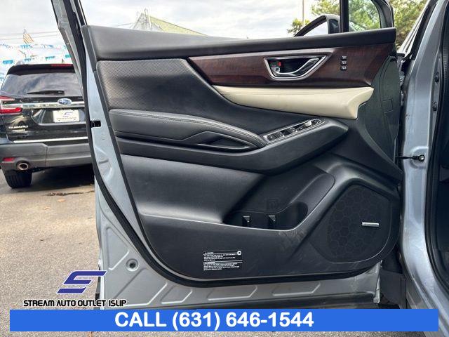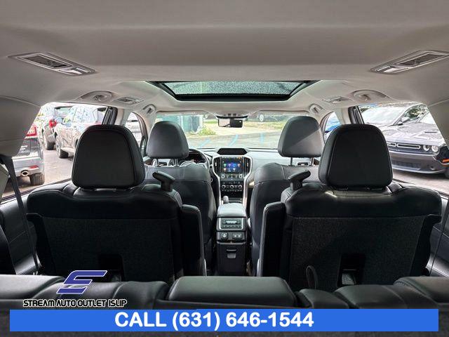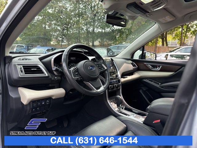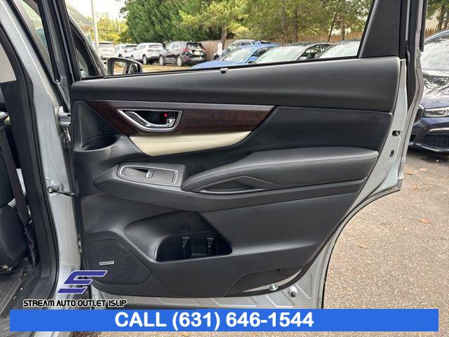 Navigation System, Standard Model w/Slate Black Interior, 14 Speakers, AM/FM radio: SiriusXM, CD player, harman/kardonĀ® Speakers, Radio data system, Radio: Subaru STARLINK 8.0" Multimedia Nav System, Air Conditioning, Automatic temperature control, Front dual zone A/C, Rear air conditioning, Rear window defroster, Memory seat, Power driver seat, Power steering, Power windows, Remote keyless entry, Steering wheel mounted audio controls, Four wheel independent suspension, Traction control, 4-Wheel Disc Brakes, ABS brakes, Dual front impact airbags, Dual front side impact airbags, Emergency communication system: STARLINK Safety and Security (Subscription Required), Front anti-roll bar, Knee airbag, Low tire pressure warning, Occupant sensing airbag, Overhead airbag, Rear anti-roll bar, Power moonroof, Rear Bumper Cover, Power Liftgate, Brake assist, Electronic Stability Control, Exterior Parking Camera Rear, Auto High-beam Headlights, Delay-off headlights, Front fog lights, Fully automatic headlights, Panic alarm, Security system, Speed control, Bumpers: body-color, Heated door mirrors, Ice Silver Metallic Body Side Molding, Power door mirrors, Spoiler, Turn signal indicator mirrors, All-Weather Floor Liners, Auto-dimming Rear-View mirror, Compass, Driver door bin, Driver vanity mirror, Front reading lights, Garage door transmitter: HomeLink, Heated steering wheel, Illuminated entry, Map & Reading Lights LED Upgrade - 6 Bulb Kit, Outside temperature display, Overhead console, Passenger vanity mirror, Rear reading lights, STARLINK/Apple CarPlay/Android Auto, Tachometer, Telescoping steering wheel, Tilt steering wheel, Trip computer, USB Charging Ports, 3rd row seats: bench, Front Bucket Seats, Front Center Armrest, Heated & Ventilated Front Bucket Seats, Heated front seats, Heated rear seats, Perforated Leather-Trimmed Upholstery, Power passenger seat, Reclining 3rd row seat, Split folding rear seat, Ventilated front seats, Passenger door bin, Alloy wheels, Wheels: 20" x 7.5 J Dk Gray Alloy w/Machine Finish, Rain sensing wipers, Rear window wiper, Variably intermittent wipers, Axle Ratio: 4.44