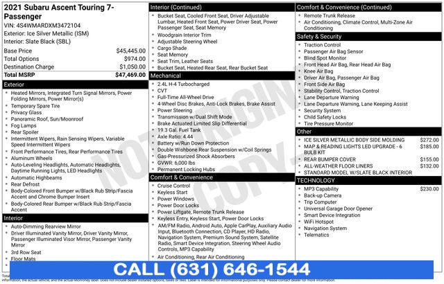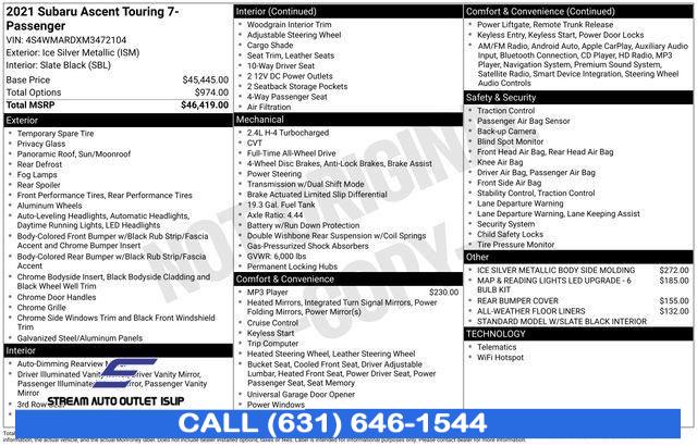For more information on this 2021 Subaru Ascent, please call Stream Auto Outlet Islip at (631) 646-1544 or with the contact form on this page. This vehicle's vin number is 4S4WMARDXM3472104 and is recorded as being in stock at Stream Auto Outlet Islip at 2232 Sunrise Hwy in Islip. See all cars from this dealership.