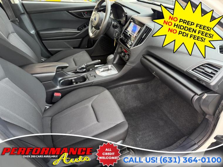 100% Clean Carfax! 2021 Subaru Impreza AWD! Eye-Sight System! Starlink 6.5" Multimedia Screen! Back-up Camera REMEMBER THE PERFORMANCE AUTO DIFFERENCE - NO PREP FEES! NO HIDDEN FEES! AND OUR PRICES DO NOT NEED TO REFLECT A TRADE OR DOWN PAYMENT! OUR PRICES ARE REAL! DON'T BE SCAMMED BY FINE PRINT! Government fees like Sales Tax, Inspection, DMV Fees and the State Limited $175 Doc processing fee are the ONLY additional fees allowed. Shame on any dealer who advertises a vehicle for a price that you CANNOT buy it for. Just be aware, if you cannot trust a dealer with their advertised price, should you trust them after that??? Shame on third party advertiser websites where consumers go to shop for cars and these sites allow this to happen and then honor these deceptive dealers with badges for "Great Deals" when after you add all their fees in, its NOT a great deal anymore. As per the AG in NY, It is against the law to advertise a vehicle for a price and then have hidden fees or down payments not included in the price. And now please beware of the another scam -- Dealers offering a "promotional price" only if you finance the vehicle with their lenders! This is also illegal and deceptive. You also do NOT need to finance to get our prices! A price should be exactly that - A PRICE! Performance Auto has been selling quality pre-owned automobiles since October 2000. 20-30% of our sales are REPEAT BUSINESS! You will feel no pressure when you enter our facility and meet one of our friendly sales representatives. All of the vehicles that we sell have to be NYS Inspected! As a Licensed New York State Dealer (Facility #7095633), we are required to provide you with a Clear Lien Free Title. As a Certified Plate program dealer, we also have the ability to issue new license plates or transfer your existing plates to your new vehicle. Please be aware of other "dealers" that sell vehicles using "out of state" licenses to avoid inspecting vehicles!