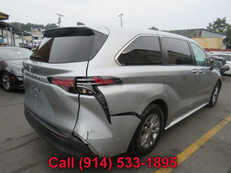 This 2021 Toyota Sienna 4dr LE AWD 8-Passenger(clear title) features a 2.5L 4 CYLINDER 4cyl Gasoline engine. It is equipped with a Continuously Variable transmission. The vehicle is Not Specified with a Not Specified interior. It is offered As-Is, extended warranty is available. - Climate Control, Dual Zone Climate Control, Cruise Control, Tinted Windows, Power Steering, Power Mirrors, Power Drivers Seat, Memory Seat Position, Rear Air Conditioning, Wood Trim, Clock, Tachometer, Telescoping Steering Wheel, Steering Wheel Radio Controls, Driver Airbag, Passenger Airbag, Keyless Entry, Rear Defogger, Intermittent Wipers, AM/FM, 3rd Row Seating, Center Arm Rest, Child Proof Door Locks, Daytime Running Lights, Dual Power Sliding Doors, Heated Mirrors, Overhead Console, Power Sliding Door, Rear Spoiler, Rear Spoiler, Rear Wipers, Rear-Side Airbags, Remote Fuel Door, Remote Trunk Lid, Reverse Camera, Roll Stability Control, Side Curtain Airbags, Sliding Rear Window, Tire Pressure Monitor, Vanity Mirrors - Contact Michael Maratto at (914) 533-1895 for more information. -