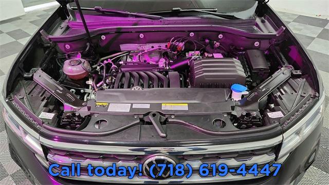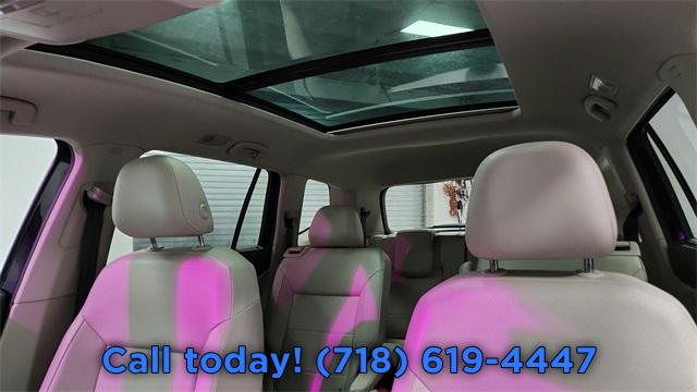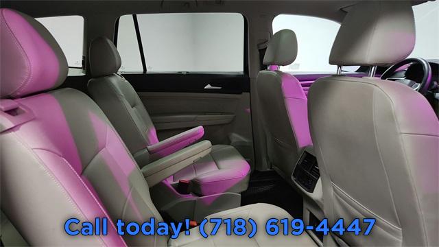Navigation System, 6 Speakers, AM/FM radio: SiriusXM, Radio data system, Remote CD player, Air Conditioning, Automatic temperature control, Front dual zone A/C, Rear air conditioning, Rear window defroster, Memory seat, Power driver seat, Power steering, Power windows, Remote keyless entry, Steering wheel mounted audio controls, Four wheel independent suspension, Speed-sensing steering, Standard Suspension, Traction control, 4-Wheel Disc Brakes, ABS brakes, Active Blind Spot Monitor, Dual front impact airbags, Dual front side impact airbags, Emergency communication system: VW Car-Net services (capabilities require enrollment or subscription), Front anti-roll bar, Low tire pressure warning, Occupant sensing airbag, Overhead airbag, Rear anti-roll bar, Power moonroof, Power Liftgate, Brake assist, Electronic Stability Control, Exterior Parking Camera Rear, Auto High-beam Headlights, Delay-off headlights, Front fog lights, Fully automatic headlights, Panic alarm, Security system, Speed control, Bumpers: body-color, Heated door mirrors, Power door mirrors, Roof rack: rails only, Spoiler, Turn signal indicator mirrors, Auto-dimming Rear-View mirror, Compass, Driver door bin, Driver vanity mirror, Frameless Self-Dimming Rearview Mirror, Front reading lights, Heated Comfort Front Bucket Seats, Heated steering wheel, Heavy Duty Trunk Liner w/VW CarGo Blocks, Illuminated entry, Leather Shift Knob, Outside temperature display, Overhead console, Passenger vanity mirror, Rear reading lights, Rear seat center armrest, Rubber Mats Kit - Captain's Chairs, Tachometer, Telescoping steering wheel, Tilt steering wheel, Trip computer, 2nd-Row Dual Captain's Chairs, 3rd row seats: split-bench, Front Bucket Seats, Front Center Armrest, Heated front seats, Perforated V-Tex Leatherette Seating Surfaces, Power passenger seat, Split folding rear seat, Passenger door bin, Privacy Cover, Alloy wheels, Wheels: 20" 5-Spoke Silver Alloy, Rain sensing wipers, Rear window wiper, Variably intermittent wipers, 3.60 Axle Ratio