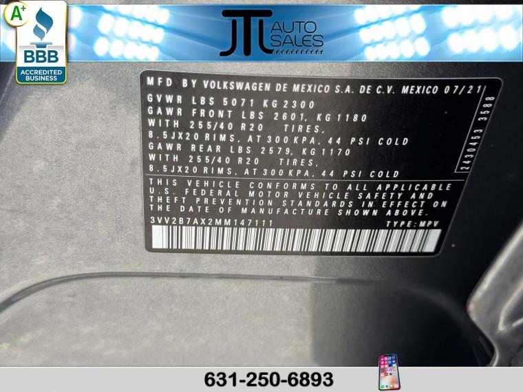 For more information on this 2021 Volkswagen Tiguan, please call JTL Auto Sales at (631) 250-6893 or with the contact form on this page. This vehicle's vin number is 3VV2B7AX2MM147111 and is recorded as being in stock at JTL Auto Sales at 504 Middle Country Rd in Selden. See all cars from this dealership.