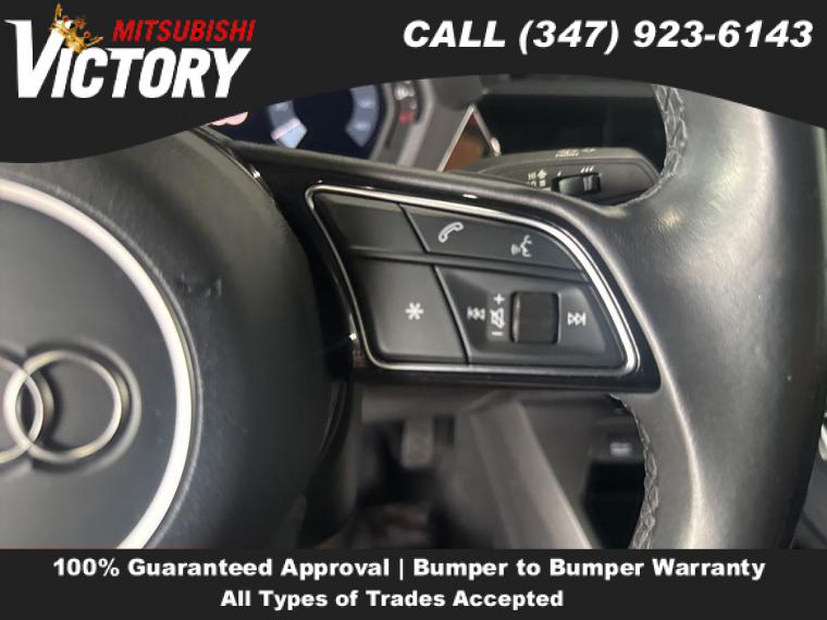 Wheels: 17" 5-Arm Design, Wheels: 18" 5-Y-Spoke Design, Heated Front Bucket Seats, Leather Seating Surfaces, Radio: Audi Sound System, Convenience Package, 18" Wheel Package, Audi Guard All-Weather Floor Mats, Alarm System w/Motion Sensor, Auto-Dimming Power Folding Exterior Mirrors, Auto-Dimming Interior Mirror w/Compass, Audi Advanced Key, Memory for Driver's Seat, Park Assist, Audi Side Assist, SiriusXM All Access Service, 4-Wheel Disc Brakes, Auto High-beam Headlights, Exterior Parking Camera Rear, Speed-Sensitive Wipers, Front beverage holders, Variably intermittent wipers, Turn signal indicator mirrors, Trip computer, Traction control, Tilt steering wheel, Telescoping steering wheel, Steering wheel mounted audio controls, Split folding rear seat, Speed-sensing steering, Speed control, Remote keyless entry, Rear window defroster, Rear seat center armrest, Rear reading lights, Rear fog lights, Rear anti-roll bar, Rear air conditioning, Rain sensing wipers, Radio data system, Power windows, Power steering, Power passenger seat, Power moonroof, Power driver seat, Power door mirrors, Passenger vanity mirror, Passenger door bin, Panic alarm, Overhead console, Overhead airbag, Outside temperature display, Occupant sensing airbag, Low tire pressure warning, Leather steering wheel, Knee airbag, Illuminated entry, Heated front seats, Heated door mirrors, Fully automatic headlights, Front reading lights, Front dual zone A/C, Front anti-roll bar, Four wheel independent suspension, Emergency communication system, Dual front side impact airbags, Dual front impact airbags, Driver vanity mirror, Driver door bin, Delay-off headlights, Bumpers: body-color, Brake assist, Automatic temperature control, Alloy wheels, AM/FM radio, ABS brakes, Tachometer, Front Center Armrest, Front Bucket Seats, Electronic Stability Control, Air Conditioning, 6 Speakers