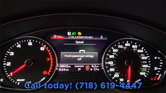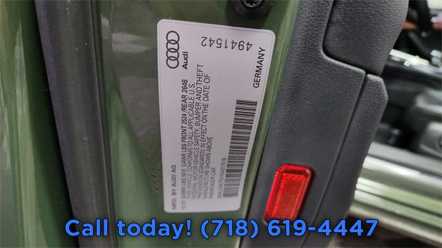 10 Speakers, AM/FM radio, Radio data system, Radio: Audi Sound System, Air Conditioning, Automatic temperature control, Front dual zone A/C, Rear air conditioning, Rear window defroster, Power driver seat, Power steering, Power windows, Remote keyless entry, Steering wheel mounted audio controls, Four wheel independent suspension, Speed-sensing steering, Traction control, 4-Wheel Disc Brakes, ABS brakes, Anti-whiplash front head restraints, Dual front impact airbags, Dual front side impact airbags, Emergency communication system: Audi connect CARE, Front anti-roll bar, Knee airbag, Low tire pressure warning, Occupant sensing airbag, Overhead airbag, Power adjustable front head restraints, Rear anti-roll bar, Power moonroof, Power Liftgate, Brake assist, Electronic Stability Control, Exterior Parking Camera Rear, Auto High-beam Headlights, Delay-off headlights, Front fog lights, Panic alarm, Speed control, Bumpers: body-color, Heated door mirrors, Power door mirrors, Rings Audi Beam, Turn signal indicator mirrors, All-Weather Floor Mats, Auto-dimming Rear-View mirror, Cargo Mat, Compass, Driver door bin, Driver vanity mirror, Front reading lights, Garage door transmitter: HomeLink, Genuine wood console insert, Genuine wood dashboard insert, Genuine wood door panel insert, Illuminated entry, Leather Shift Knob, Leather steering wheel, Outside temperature display, Overhead console, Passenger vanity mirror, Rear reading lights, Rear seat center armrest, Tachometer, Telescoping steering wheel, Tilt steering wheel, Trip computer, Front Bucket Seats, Front Center Armrest, Heated Front Seats, Heated front seats, Leather Seating Surfaces, Power passenger seat, Split folding rear seat, Passenger door bin, Alloy wheels, Wheels: 18" 5-V-Spoke-Y Design, Rain sensing wipers, Speed-Sensitive Wipers, Variably intermittent wipers