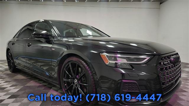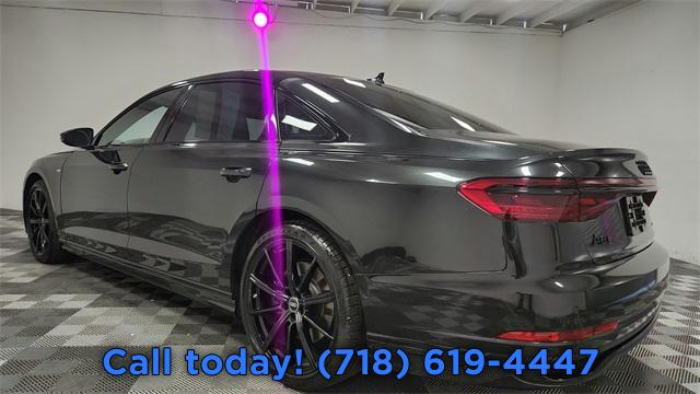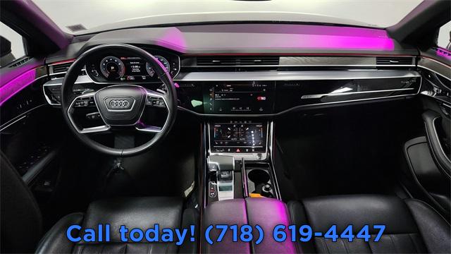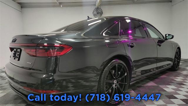 Recent Arrival! CARFAX One-Owner. 2022 Audi A8 L 55 quattro Black w/Valetta Leather Seat Upholstery or Valcona Leather Seat Upholstery, 20" 10-Parallel-Spoke-Design Wheels, Alu-Optic Buttons, AM/FM radio: SiriusXM, Audi Adaptive Cruise Assist w/Lane Guidance, Audi Side Assist, Auto High-beam Headlights, Automatic temperature control, Bang & Olufsen Sound System w/3D Sound, Black Audi Rings & Badges, Black Optic Plus Package, Black Steel Brake Calipers, Contour/Ambient LED Interior Lighting Package, Executive Package, Front dual zone A/C, Front fog lights, Headlight cleaning, Heated Steering Wheel, Intersection Assist, Navigation system: MMI Navigation plus, Power 2nd-Row Moonroof, Radio data system, Rear air conditioning, Rear dual zone A/C, Steering wheel memory, Steering wheel mounted audio controls, Traffic Sign Recognition, Wheels: 21" Audi Sport 10-Spoke Design.