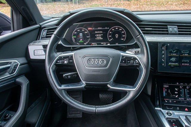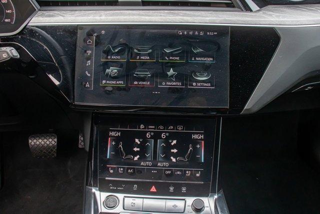 2nd Charge Port (AC Passenger Side), ABS brakes, Adaptive Cruise Assist w/Lane Guidance, All Weather Floor Mats, Ambient Interior Lighting Package, Audi Phone Box w/Wireless Charging, Audi smartphone interface (Apple CarPlay/Android Auto), Automatic temperature control, Bang & Olufsen 3D Premium Sound System, Black Optic Exterior Package, Black Optic Package, Brake assist, Dynamic Orange Brake Calipers, Electronic Stability Control, Exterior Parking Camera Rear, Four wheel independent suspension, Front dual zone A/C, Heated Rear Seats, Illuminated Front & Rear Aluminum Door Sills, Interior Protection Package, Matrix-Design LED Headlights, Memory seat, Navigation system: Audi MMI Navigation plus with Touch Response, Power door mirrors, Power driver seat, Power Liftgate, Power moonroof: Panoramic, Power passenger seat, Power steering, Power windows, Premium Plus Package, Radio data system, Radio: Audi Sound System, Rear dual zone A/C, Rear window defroster, Remote keyless entry, Steering wheel memory, Steering wheel mounted audio controls, Top View Camera System, Traction control, Traffic Sign Recognition, Turn signal indicator mirrors, Ventilated Front Seats, Wheels: 21 Black 5-Double-Spoke Turbine-Design. Priced below KBB Fair Purchase Price! Recent Arrival! CARFAX One-Owner. 78/77 City/Highway MPG2022 Audi e-tron Premium Plus quattro Gray Metallic Premium Plus quattro quattro Single-Speed Automatic Electric MotorSpecial pricing ad/promotion is available to customers who reference such pricing and present the ad at the time of sale otherwise store list price applies. Buyer is responsible to verify options/packages. Any error voids the ad. Certified Pre-Owned program available. Same-day delivery In-stock units only. Dealer-installed accessories are extra. Dealer is not responsible for typographical errors. Every vehicle in inventory is equipped with LoJack at an additional cost. The special price expires at the midnight of the publication date. For return & exchange policy visit the website for details. All Prices will be honored as cash prices. Prices do not include the following fees: Doc Fee, tax, tags, DMV fees. Pre-installed LoJack, and Pre-Certification (vary between vehicles) Please visit or call the dealership for complete details.