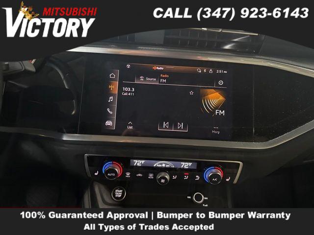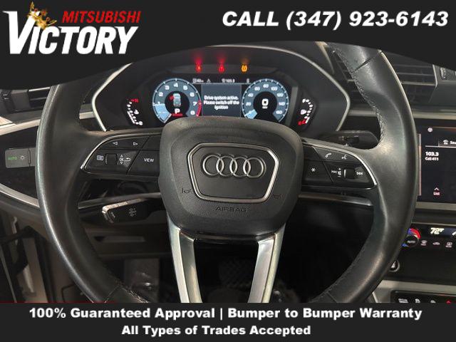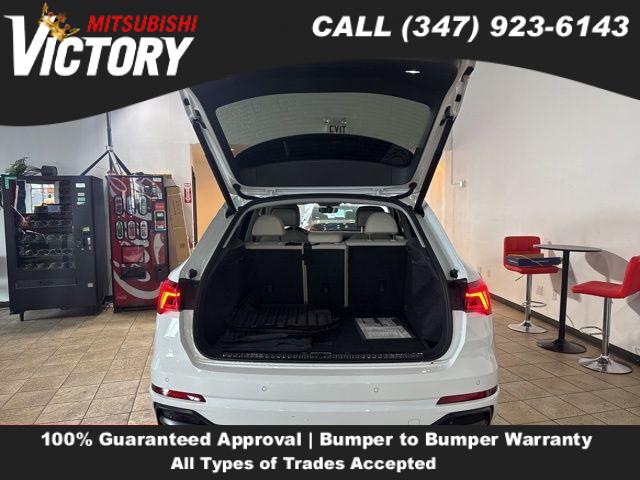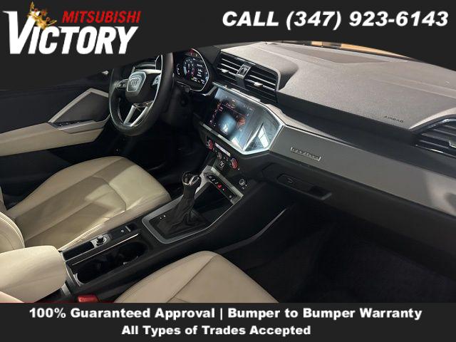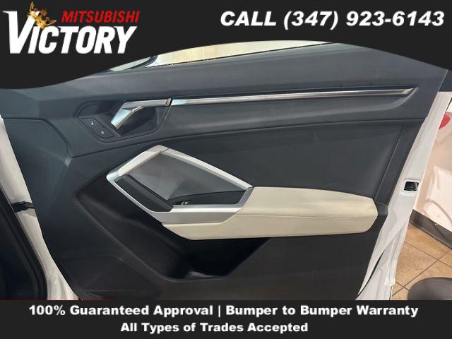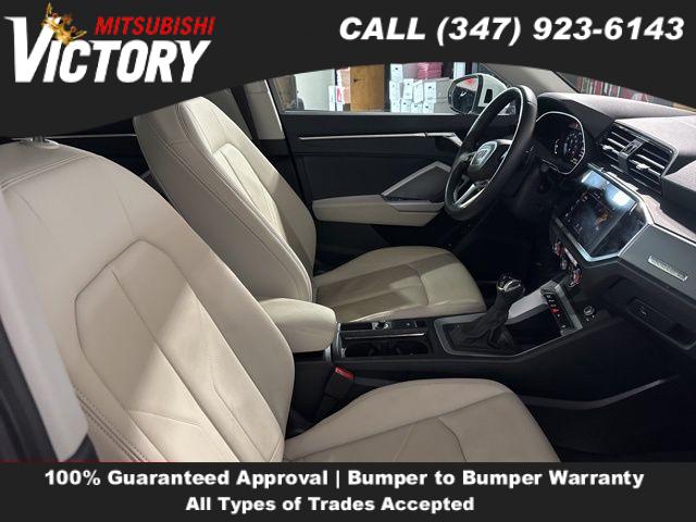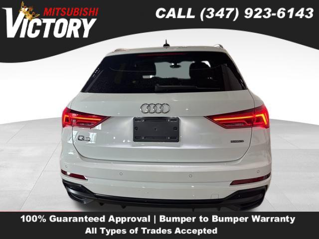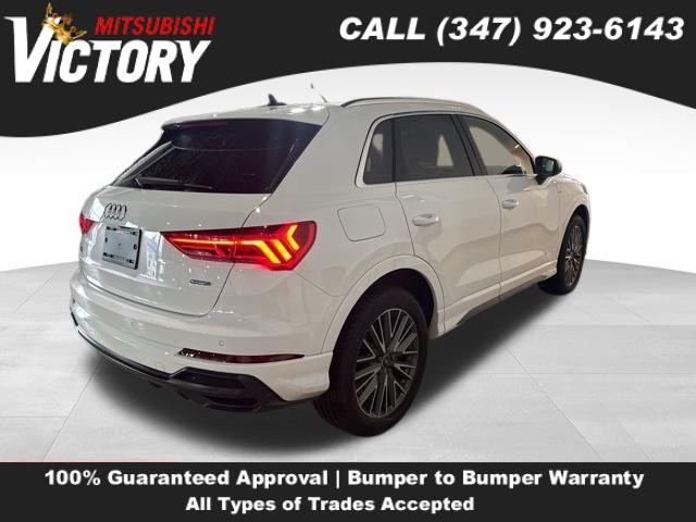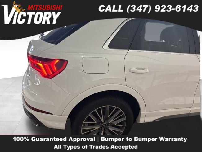 2022 Audi Q3 Premium S Line quattro White 4D Sport Utility Save yourself Time and Money - Fill out a credit application online at victorymitsubishi.com and get pre-APPROVED! Financing available for all types of credit with low monthly payment that will fit you budget. Down Payment low as $599. Same day delivery. View our entire inventory by visiting our virtual showroom at victorymitsubishi.com - Only 2 blocks away from Exit 13 off I-95 or Minutes from exit 7 on the Hutchinson Parkway. While we make every effort to ensure the data listed here is correct, there may be instances where the pricing, options or vehicle features may be listed incorrectly. Dealer cannot be held liable for data that is listed incorrectly. to see more pictures of this vehicle or call us at (347) 923-6143 today to schedule your test drive. please refer to dealer’s website for exact pricing and for any incentives that we may apply! Our address is 4070 Boston Road, Bronx, NY 10475.