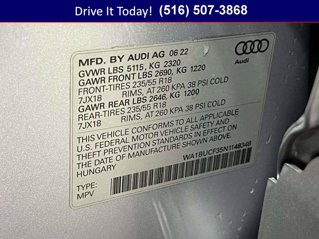 For more information on this 2022 Audi Q3, please call Westbury Jeep Chrysler Dodge at (516) 507-3868 or with the contact form on this page. This vehicle's vin number is WA1BUCF35N1148348 and is recorded as being in stock at Westbury Jeep Chrysler Dodge at 100 Jericho Tpke in Jericho. See all cars from this dealership.