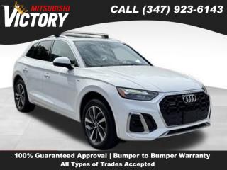 2022 Audi Q5 45 S line Premium quattro White 4D Sport Utility Save yourself Time and Money - Fill out a credit application online at victorymitsubishi.com and get pre-APPROVED! Financing available for all types of credit with low monthly payment that will fit you budget. Down Payment low as $599. Same day delivery. View our entire inventory by visiting our virtual showroom at victorymitsubishi.com - Only 2 blocks away from Exit 13 off I-95 or Minutes from exit 7 on the Hutchinson Parkway. While we make every effort to ensure the data listed here is correct, there may be instances where the pricing, options or vehicle features may be listed incorrectly. Dealer cannot be held liable for data that is listed incorrectly. to see more pictures of this vehicle or call us at (347) 923-6143 today to schedule your test drive. please refer to dealer’s website for exact pricing and for any incentives that we may apply! Our address is 4070 Boston Road, Bronx, NY 10475.