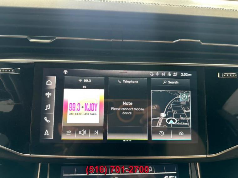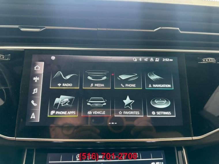 ABS, 4-Wheel Disc Brakes, 8-Speed A/T, A/C, A/T, Active Suspension, Adjustable Steering Wheel, Aerial View Display System, Security System, All Wheel Drive, Aluminum Wheels, AM/FM Stereo, Transmission w/Dual Shift Mode, Automatic Headlights, Automatic Highbeams, Auxiliary Audio Input, Back-Up Camera, Blind Spot Monitor, Brake Actuated Limited Slip Differential, Brake Assist, Bucket Seats, Cargo Shade, Child Safety Locks, Climate Control, Cross-Traffic Alert, Cruise Control, Daytime Running Lights, Driver Air Bag, Driver Illuminated Vanity Mirror, Driver Adjustable Lumbar, Driver Restriction Features, Driver Vanity Mirror, Auto-Dimming Rearview Mirror, Stability Control, Fog Lamps, Front Collision Mitigation, Floor Mats, Gasoline/Mild Electric Hybrid, Hands-Free Liftgate, HD Radio, Headlights-Auto-Leveling, Heated Front Seat(s), Heated Mirrors, Heated Rear Seat(s), Heated Steering Wheel, Integrated Turn Signal Mirrors, Intermittent Wipers, Keyless Entry, Keyless Start, Leather Seats, Leather Steering Wheel, LED Headlights, Lithium Ion Traction Battery, Mirror Memory, MP3 Capability, Navigation System, Telematics, Panoramic Roof, Pass-Through Rear Seat, Passenger Air Bag, Passenger Air Bag Sensor, Passenger Illuminated Visor Mirror, Passenger Vanity Mirror, Power Door Locks, Power Mirror(s), Power Driver Seat, Power Folding Mirrors, Power Liftgate, Power Passenger Seat, Power Steering, Power Windows, Privacy Glass, Rain Sensing Wipers, Rear Bench Seat, Rear Side Air Bag, Rear Collision Mitigation, Rear Defrost, Rear Head Air Bag, Rear Parking Aid, Rear Spoiler, Remote Trunk Release, Requires Subscription, Satellite Radio, Seat Memory, Front Side Air Bag, Front Head Air Bag, Smart Device Integration, Steering Wheel Audio Controls, Generic Sun/Moonroof, Tire Pressure Monitor, Tires - Front Performance, Tires - Rear Performance, Traction Control, Trip Computer, Turbocharged, Universal Garage Door Opener, V6 Cylinder Engine, Variable Speed Intermittent Wipers, Immobilizer, WiFi Hotspot, Bluetooth Connection, Woodgrain Interior Trim, Aluminum Panels, Auto On/Off Projector Beam Auto-Leveling Auto High-Beam Headlamps w/Delay-Off, Body-Colored Door Handles, Body-Colored Front Bumper, Body-Colored Power Heated Auto Dimming Side Mirrors w/Power Folding and Turn Signal Indicator, Body-Colored Rear Bumper w/Metal-Look Bumper Insert, Collapsible Spare Tire Mounted Inside Under Cargo, Deep Tinted Glass, Express Open/Close Sliding And Tilting Glass Panoramic 1st And 2nd Row Sunroof w/Power Sunshade, Fixed Rear Window w/Yes Wiper and Defroster, Headlights-Automatic Highbeams, Lip Spoiler, Metal-Look Bodyside Insert and Body-Colored Wheel Well Trim, Metal-Look Grille, Metal-Look Side Windows Trim and Black Front Windshield Trim, Perimeter/Approach Lights, Power Liftgate Rear Cargo Access, Rain Detecting Variable Intermittent Wipers w/Heated Jets, Rear Fog Lamps, Steel Spare Wheel, Tailgate/Rear Door Lock Included w/Power Door Locks, Tires: 285/45R21 All-Season, Wheels w/Silver Accents, Wheels: 21" 5-Segment-Spoke-Design, 2 Seatback Storage Pockets, 3 12V DC Power Outlets, 40-20-40 Folding Split-Bench Front Facing Manual Reclining Fold Forward Seatback Rear Seat w/Manual Fore/Aft, Air Filtration, Ashtray, Audi connect 4G LTE Mobile Hotspot Internet Access, Automatic Air Conditioning, Cargo Area Concealed Storage, Cargo Space Lights, Carpet Floor Trim, Compass, Cruise Control, Day-Night Auto-Dimming Rearview Mirror, Delayed Accessory Power, Digital/Analog Appearance, Driver And Passenger Visor Vanity Mirrors w/Driver And Passenger Illumination, Driver And Passenger Auxiliary Mirror, Driver Foot Rest, Driver Information Center, Driver Seat, Fade-To-Off Interior Lighting, FOB Controls -inc: Keyfob Cargo Access, Front And Rear Map Lights, Front Cupholder, Full Carpet Floor Covering -inc: Carpet Front And Rear Floor Mats, Full Cloth Headliner, Full Floor Console w/Covered Storage, Mini Overhead Console and 3 12V DC Power Outlets, Gauges -inc: Speedometer, Odometer, Engine Coolant Temp, Tachometer, Trip Odometer and Trip Computer, Heated Front Bucket Seats -inc: 8-way power front seats w/driver 4-way power lumbar and driver memory, HomeLink Garage Door Transmitter, HVAC -inc: Underseat Ducts, Residual Heat Recirculation, Headliner/Pillar Ducts and Console Ducts, Illuminated Locking Glove Box, Immobilizer, Interior Trim -inc: Genuine Wood/Piano Black Instrument Panel Insert, Genuine Wood/Metal-Look Door Panel Insert, Genuine Wood/Piano Black Console Insert and Aluminum/Metal-Look Interior Accents, Leather Seating Surfaces, Leather Steering Wheel, Leather/Metal-Look Gear Shifter Material, Leatherette Door Trim Insert, Manual w/Tilt Front Head Restraints and Manual Adjustable Rear Head Restraints, Memory Settings -inc: Door Mirrors and Steering Wheel, Outside Temp Gauge, Passenger Seat, Perimeter Alarm, Power 1st Row Windows w/Front And Rear 1-Touch Up/Down, Power Door Locks w/Autolock Feature, Power Rear Windows and Fixed 3rd Row Windows, Power Tilt/Telescoping Steering Column, Proximity Key For Doors And Push Button Start, Rear Cupholder, Redundant Digital Speedometer, Refrigerated/Cooled Box Located In The Glovebox, Driver / Passenger And Rear Door Bins, Remote Keyless Entry w/Integrated Key Transmitter, 4 Door Curb/Courtesy, Illuminated Entry and Panic Button, Remote Releases -Inc: Proximity Cargo Access and Power Fuel, Roll-Up Cargo Cover, Sliding Front Center Armrest and Rear Center Armrest, Tracker System, Trip Computer, Trunk/Hatch Auto-Latch, Valet Function, 1157# Maximum Payload, 22.5 Gal. Fuel Tank, 68-Amp/Hr 380CCA Maintenance-Free Battery w/Run Down Protection, Automatic w/Driver Control Ride Control Adaptive Suspension, Axle Ratio: TBD, Brake Actuated Limited Slip Differential, Dual Stainless Steel Exhaust, Electric Power-Assist Speed-Sensing Steering, Engine Oil Cooler, Engine: 3.0 TFSI 6 Cylinder 24-Valve DOHC 335 HP -inc: start/stop system w/48V MHEV mild hybrid technology, Front And Rear Anti-Roll 