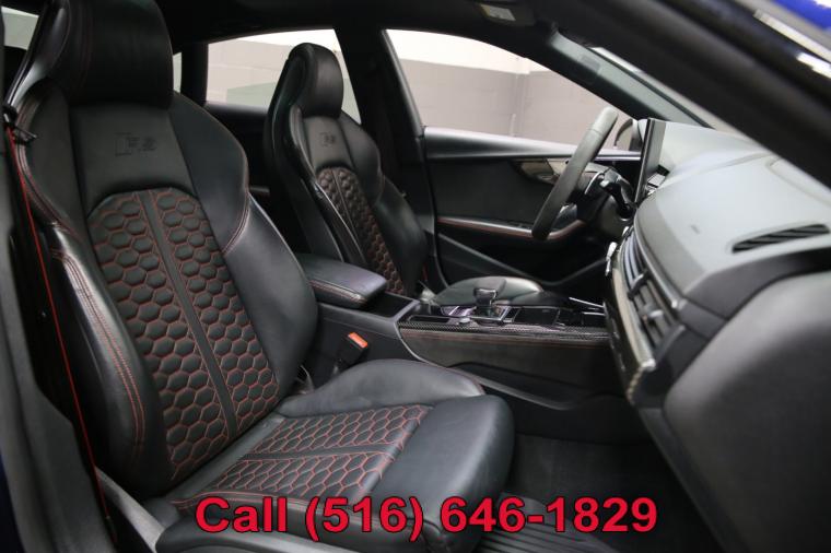 2022 Audi RS5 Sportback finished with a Navarra Blue Metallic exterior and Black interior with Crescendo Red Stitching. Driven 50,910 careful miles since new. This RS5 Sportback had an original list price of $95,025. Options on this RS5 Sportback include the Black Optic Carbon Package, Dynamic Package, RS Driver Assistance Package, Navigation Package, RS Design Package, Dynamic Steering, Side Assist Package, Audi Guard Protection Kit, Black Audi Rings and Badges and much more. This RS5 Sportback just underwent a complete oil and fluid service within the last 20 miles and it drives even better than it looks. The massive V6 biturbo engine is strong and powerful and the 8-speed Tiptronic automatic transmission shifts effortlessly through all of the gears. The steering is tight and precise and the brakes feel just great. This really is a fantastic RS5 to drive. The interior is stunning. The rare Black leather seats with Crescendo Red stitching are in remarkable condition (see pictures) showing just minimal wear to the seats. The dashboard is like new (looks great with the factory navigation system) and even the carpets don't look or feel like they have been stepped on thanks to the factory Audi floor mats that have been protecting them. The exterior is what really sets this particular RS5 apart from the rest. The Navarra Blue Metallic paint is in fantastic condition (see pictures) with no major dents or dings anywhere at all. The paint is bright and shiny with plenty of luster. Add the optional Black Optic Carbon Package and 20 inch wheels mounted on great tires and this Audi really does look special. The 2022 Audi RS5 Sportback really is the ultimate sport sedan. It has unique looks, Audi's legendary Quattro all wheel drive system for all weather and road conditions along with all of Audi's legendary safety, luxury and reliability. There are a few apologies to this Audi that I would like to mention. There are a few typical nicks and chips (see pictures), a couple of light touchups and a bit of the carbon fiber trim has showed it's age (see pictures). Please feel free to call me (Matt 516-646-1829) with any additional questions you may have.