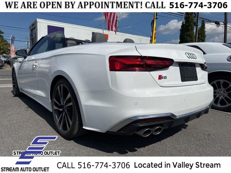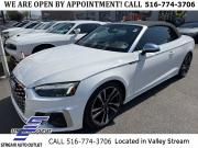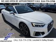 * NYS INSPECTION INCLUDED *, * FULL INTERIOR / EXTERIOR DETAIL *, * BACK UP CAMERA *, * NAVIGATION SYSTEM *, * BLUETOOTH *, * LEATHER SEATS *, * LIMITED NYS LEMON LAW WARRANTY INCLUDED *, *FRESH OIL CHANGE *, * 150 MULTI POINT INSPECTION *, APPLE CAR PLAY/ANDROID AUTO, S5 3.0T Premium Plus quattro, 2D Convertible, 3.0L TFSI, 8-Speed Automatic with Tiptronic, quattro, Ibis White/Black Roof, Rotor Gray w/Fine Nappa Leather Seating Surfaces, Audi Active Lane Assist, Audi Adaptive Cruise Control w/Traffic Jam Assist, Audi Connect PRIME & PLUS, Audi Phone Box, Audi S Beam - Front Doors Only, Audi Virtual Cockpit Plus, Bang & Olufsen Sound System w/3D Sound, Convenience Package, Hands-On Detection Steering Wheel, Leatherette Covered Center Console & Door Armrests, MMI Navigation Plus, Navigation Package, Navigation System, Power Folding Exterior Mirrors, Premium Plus Package, Top View Camera System.