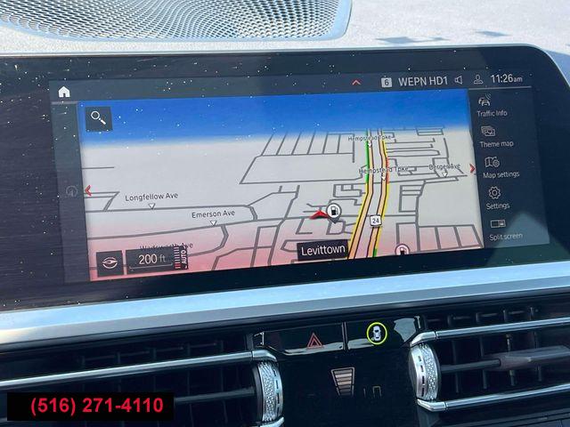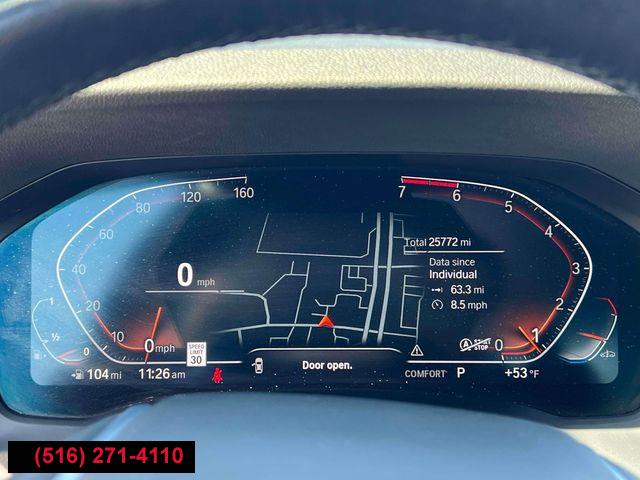 Navigation, Navigation System, Connected Package Pro, Driving Assistance Package, Premium Package 2, 10 Speakers, AM/FM radio: SiriusXM with 360L, Hi-Fi Sound System, Radio Control US, Radio data system, Radio: AM/FM Audio System, SiriusXM w/360L, Air Conditioning, Automatic temperature control, Front dual zone A/C, Rear air conditioning, Rear window defroster, Comfort Access Keyless Entry, Lumbar Support, Memory seat, Power driver seat, Power steering, Power windows, Remote Engine Start, Remote keyless entry, Steering wheel mounted audio controls, Four wheel independent suspension, Speed-sensing steering, Traction control, 4-Wheel Disc Brakes, ABS brakes, Dual front impact airbags, Dual front side impact airbags, Emergency communication system: BMW Assist eCall, Front anti-roll bar, Knee airbag, Low tire pressure warning, Occupant sensing airbag, Overhead airbag, Rear anti-roll bar, Power moonroof, Active Blind Spot Detection, Brake assist, Electronic Stability Control, Lane Departure Warning System, Exterior Parking Camera Rear, Auto High-beam Headlights, Delay-off headlights, Fully automatic headlights, Panic alarm, Security system, Speed control, Auto-dimming door mirrors, Bumpers: body-color, Heated door mirrors, Power door mirrors, Turn signal indicator mirrors, Active Driving Assistant, Apple CarPlay & Android Auto Compatibility, Apple CarPlay Compatibility, Auto-dimming Rear-View mirror, BMW Assist eCall, BMW TeleServices, Compass, ConnectedDrive Services, Driver door bin, Driver vanity mirror, Enhanced Bluetooth, Front reading lights, Garage door transmitter, Genuine wood console insert, Genuine wood dashboard insert, Gesture Control, Hands-Free Bluetooth & USB Audio Connection, Heated Steering Wheel, Illuminated entry, Leather Shift Knob, Leather steering wheel, Live Cockpit Pro w/Navi, Outside temperature display, Park Distance Control, Passenger vanity mirror, Rear reading lights, Rear seat center armrest, Sport steering wheel, Tachometer, Telescoping steering wheel, Tilt steering wheel, Trip computer, Front Bucket Seats, Front Center Armrest, Heated Front Seats, Perforated Sensatec Upholstery, Power Front Seats, Power passenger seat, Split folding rear seat, Sport Seats, Passenger door bin, Alloy wheels, Wheels: 18" x 7.5" V-Spoke Bi-Color Orbit Grey, Wheels: 19" x 8" Double-Spoke Bi-Color Orbit Grey, Rain sensing wipers, Speed-Sensitive Wipers, Variably intermittent wipers