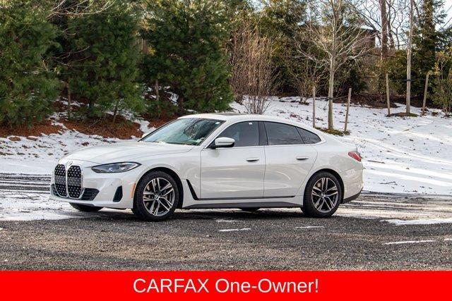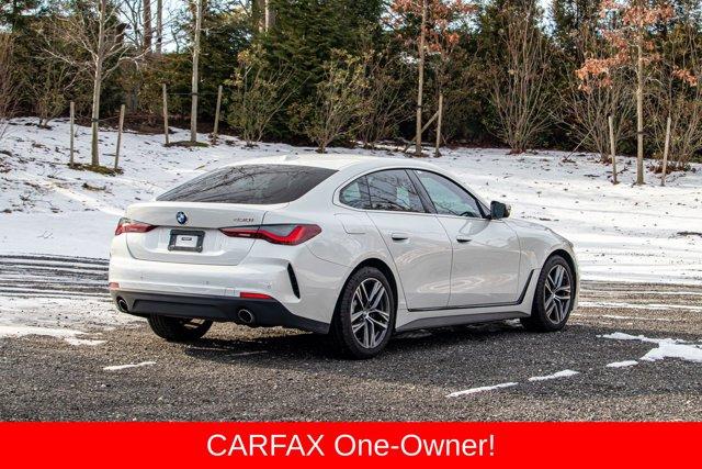 4-Wheel Disc Brakes, AM/FM radio: SiriusXM with 360L, Apple CarPlay & Android Auto Compatibility, Automatic temperature control, Brake assist, Exterior Parking Camera Rear, Four wheel independent suspension, Front dual zone A/C, Fully automatic headlights, Heated Front Seats, Hi-Fi Sound System, Memory seat, Power Front Seats, Power Liftgate, Power moonroof, Power passenger seat, Power steering, Power windows, Rear air conditioning, Security system, Sport Seats, Traction control. Priced below KBB Fair Purchase Price! CARFAX One-Owner. 25/34 City/Highway MPG2022 BMW 4 Series 430i Gran Coupe Mineral White Metallic 430i Gran Coupe RWD 8-Speed Automatic Sport 2.0L 4-Cylinder DOHC 16V TurbochargedSpecial pricing ad/promotion is available to customers who reference such pricing and present the ad at the time of sale otherwise store list price applies. Buyer is responsible to verify options/packages. Any error voids the ad. Certified Pre-Owned program available. Same-day delivery In-stock units only. Dealer-installed accessories are extra. Dealer is not responsible for typographical errors. Every vehicle in inventory is equipped with LoJack at an additional cost. The special price expires at the midnight of the publication date. For return & exchange policy visit the website for details. All Prices will be honored as cash prices. Prices do not include the following fees: Doc Fee, tax, tags, DMV fees. Pre-installed LoJack, and Pre-Certification (vary between vehicles) Please visit or call the dealership for complete details.