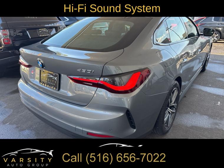 The Price you See, is the Price You Pay!!!, 10 Speakers, 4-Wheel Disc Brakes, ABS brakes, Air Conditioning, Alloy wheels, AM/FM radio: SiriusXM with 360L, Apple CarPlay Compatibility, Auto High-beam Headlights, Auto-dimming door mirrors, Automatic temperature control, BMW Assist eCall, Brake assist, Convenience Package, Delay-off headlights, Driver vanity mirror, Dual front impact airbags, Dual front side impact airbags, Emergency communication system: BMW Assist eCall, Exterior Parking Camera Rear, Four wheel independent suspension, Front Bucket Seats, Front Center Armrest, Front dual zone A/C, Front reading lights, Garage door transmitter, Genuine wood console insert, Heated Front Seats, Hi-Fi Sound System, Live Cockpit Pro w/Navi, Lumbar Support, Memory seat, Navigation System, Occupant sensing airbag, Overhead airbag, Panic alarm, Passenger door bin, Perforated Sensatec Upholstery, Power door mirrors, Power driver seat, Power Liftgate, Power steering, Radio Control US, Radio data system, Rain sensing wipers, Rear reading lights, Rear seat center armrest, Security system, Speed-sensing steering, Split folding rear seat, Tachometer, Telescoping steering wheel, Tilt steering wheel, Wheels: 18" x 8.5" Double-Spoke Bi-Color. Skyscraper Gray Metallic 2022 BMW 4 Series 430i Gran Coupe RWD 8-Speed Automatic Sport 2.0L 4-Cylinder DOHC 16V Turbocharged Odometer is 4956 miles below market average! 25/34 City/Highway MPG