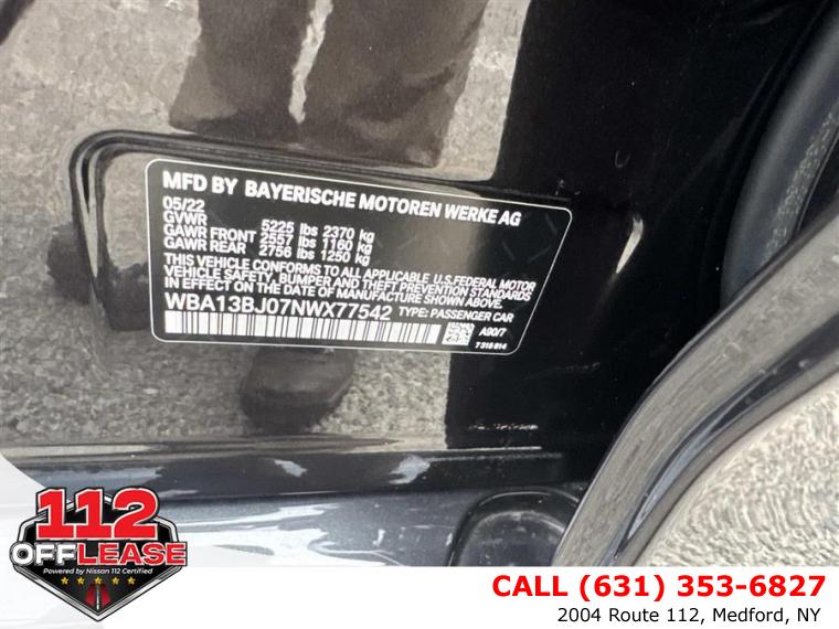 For more information on this 2022 BMW 530i, please call 112 Off Lease at (631) 353-6827 or with the contact form on this page. This vehicle's vin number is WBA13BJ07NWX77542 and is recorded as being in stock at 112 Off Lease at 2004 Route 112 in Medford. See all cars from this dealership.