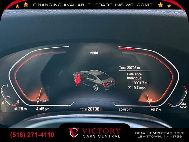 Navigation System, Connected Package Pro, M Sport Package, M Sport Package (337), 16 Speakers, AM/FM radio: SiriusXM, harman/kardon Surround Sound System, harman/kardonĀ® Speakers, Radio data system, Radio: AM/FM/HD, SiriusXM w/360L, Weather band radio, Air Conditioning, Automatic temperature control, Front dual zone A/C, Rear air conditioning, Rear dual zone A/C, Rear window defroster, Head restraints memory, Memory seat, Power driver seat, Power steering, Power windows, Remote keyless entry, Steering wheel memory, Steering wheel mounted audio controls, Adaptive suspension, Auto-leveling suspension, Four wheel independent suspension, Heated Front Seats, Armrests & Steering Wheel, Speed-sensing steering, Traction control, 4-Wheel Disc Brakes, ABS brakes, Anti-whiplash front head restraints, Dual front impact airbags, Dual front side impact airbags, Emergency communication system: BMW Assist eCall, Front anti-roll bar, Knee airbag, Low tire pressure warning, Occupant sensing airbag, Overhead airbag, Power adjustable front head restraints, Rear anti-roll bar, Power moonroof: Panorama, Brake assist, Electronic Stability Control, Auto High-beam Headlights, Delay-off headlights, Fully automatic headlights, Panic alarm, Security system, Speed control, Aerodynamic Kit, Auto-dimming door mirrors, Bumpers: body-color, Door auto-latch, Heated door mirrors, Power door mirrors, Shadowline Exterior Trim, Without Lines Designation Outside, Anthracite Headliner, Apple CarPlay & Android Auto Compatibility, Auto tilt-away steering wheel, Auto-dimming Rear-View mirror, ConnectedDrive Services, Drive Recorder, Driver door bin, Driver vanity mirror, Fineline Black Wood Trim, Front reading lights, Garage door transmitter, Genuine wood console insert, Genuine wood dashboard insert, Genuine wood door panel insert, Gesture Control, Heated steering wheel, Illuminated entry, Leather Shift Knob, Leather steering wheel, M Steering Wheel, Outside temperature display, Overhead console, Passenger vanity mirror, Rear reading lights, Rear seat center armrest, Sport steering wheel, Tachometer, Telescoping steering wheel, Tilt steering wheel, Trip computer, WiFi Hotspot, Wireless Charging, Dakota Leather Upholstery, Front & Rear Heated Seats, Front Bucket Seats, Front Center Armrest, Front Ventilated Seats, Heated front seats, Multi-Contour Seats, Power passenger seat, Passenger door bin, Alloy wheels, Wheels: 18" x 8.0" V-Spoke Style 642, Wheels: 19" x 8.5" M Double-Spoke Style 647M, Rear Window Blind, Rain sensing wipers, Speed-Sensitive Wipers, Variably intermittent wipers