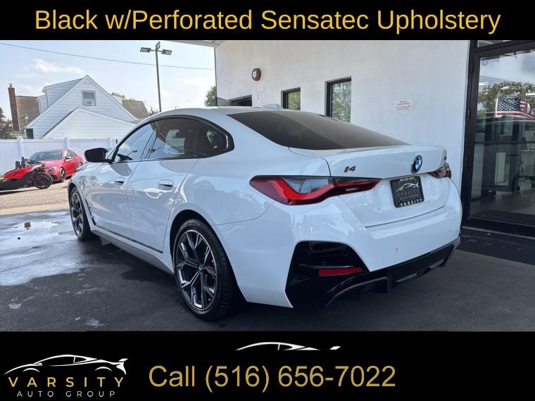 Navigation system: BMW Maps Navigation, Connected Package Pro, Premium Package, 10 Speakers, Hi-Fi Sound System, Radio data system, Radio: FM Audio System, SiriusXM w/360L, Air Conditioning, Automatic temperature control, Front dual zone A/C, Rear air conditioning, Rear window defroster, Lumbar Support, Memory seat, Power driver seat, Power steering, Power windows, Remote keyless entry, Steering wheel mounted audio controls, Adaptive suspension, Auto-leveling suspension, Four wheel independent suspension, Speed-sensing steering, Traction control, 4-Wheel Disc Brakes, ABS brakes, Dual front impact airbags, Dual front side impact airbags, Emergency communication system: BMW Assist eCall, Front anti-roll bar, Low tire pressure warning, Occupant sensing airbag, Overhead airbag, Rear anti-roll bar, Power moonroof, Power Liftgate, Brake assist, Electronic Stability Control, Exterior Parking Camera Rear, Auto High-beam Headlights, Delay-off headlights, Fully automatic headlights, Panic alarm, Security system, Speed control, Auto-dimming door mirrors, Bumpers: body-color, Heated door mirrors, Power door mirrors, Spoiler, Turn signal indicator mirrors, Ambient Lighting, Apple CarPlay & Android Auto Compatibility, Auto-dimming Rear-View mirror, BMW Assist eCall, BMW Curved Display, BMW Curved Display w/HUD, BMW TeleServices, Carbon Fiber Trim, Compass, ConnectedDrive Services, Driver door bin, Driver vanity mirror, Front reading lights, Garage door transmitter, Heated Steering Wheel, Illuminated entry, Leather Shift Knob, Leather steering wheel, Outside temperature display, Overhead console, Passenger vanity mirror, Rear reading lights, Rear seat center armrest, Sport steering wheel, Telescoping steering wheel, Tilt steering wheel, Trip computer, Front Bucket Seats, Front Center Armrest, Heated Front Seats, Perforated Sensatec Upholstery, Power Front Seats, Power passenger seat, Split folding rear seat, Sport Seats, Passenger door bin, Wheels: 20" x 8.5" Fr & 20" x 10.0" Rr M Bi-Color, Rain sensing wipers, Speed-Sensitive Wipers, Variably intermittent wipers, The Price you See, is the Price You Pay!!!, BMW i4 M50, xDrive, Alpine White, Black w/Perforated Sensatec Upholstery, Clean CARFAX, Low Miles