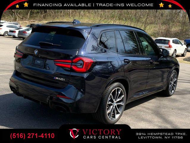 All pricing and details are believed to be accurate, but we do not warrant or guarantee such accuracy. The prices shown above may vary from region to region, as will incentives, and are subject to change. All cars are sold cosmetically As-Is. Vehicle information is based on standard equipment and may vary from vehicle to vehicle. Call or email for complete vehicle specific information. Price Does not include tax, title, license, destination charges, finance charges, or any reconditioning fees. Our special Internet pricing cannot be extended without a printed copy of the online pricing. The in-store price may exceed our special online pricing. Sorry but we cannot extend special pricing without a printed copy of the on-line pricing. To take advantage of our special Internet discounts, please print this page and present it to your salesperson at the BEGINNING of the transaction. Special Internet pricing posted on this ad/coupon/promotion is only available to customers who reference such pricing & present the ad at time of sale otherwise our store standard list price applies. Please be advised this ad is a Special Internet only ad. Prices can be modified and adjusted weekly, daily and sometimes hourly due to inquiries, bidding and website traffic on any Vehicles. All displayed inventory is subject to prior sale and all prices expire at midnight on the date displayed. Every reasonable effort has been made to ensure the accuracy of the information contained on this site, however absolute accuracy cannot be guaranteed. Advertised special excludes state tax, title, license, registration, NY state inspection, NYS tire recycling fee, finance charges, and dealer fees if applicable. Please verify any information in question with the dealership sales manager. This is easily done by calling us at (516) 271-4110 or by visiting us at the dealership. **With approved credit. Carbon Black Metallic 2022 BMW X3 M40i AWD 8-Speed Automatic Sport I6 8-Speed Automatic Sport.