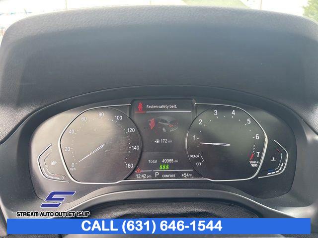 Navigation, Navigation System, Connected Package Pro, Convenience Package, 12 Speakers, AM/FM Radio, AM/FM radio: SiriusXM with 360L, ConnectedDrive Services, Hi-Fi Sound System, Radio data system, SiriusXM w/360L, Air Conditioning, Automatic temperature control, Front dual zone A/C, Rear air conditioning, Rear window defroster, Comfort Access Keyless Entry, Lumbar Support, Memory seat, Power driver seat, Power steering, Power windows, Remote Engine Start, Remote keyless entry, Steering wheel mounted audio controls, Four wheel independent suspension, Speed-sensing steering, Traction control, 4-Wheel Disc Brakes, ABS brakes, Dual front impact airbags, Dual front side impact airbags, Emergency communication system: BMW Assist eCall, Front anti-roll bar, Knee airbag, Low tire pressure warning, Occupant sensing airbag, Overhead airbag, Rear anti-roll bar, Panoramic Moonroof, Power Liftgate, Brake assist, Electronic Stability Control, Exterior Parking Camera Rear, Auto High-beam Headlights, Delay-off headlights, Fully automatic headlights, Panic alarm, Security system, Speed control, Auto-dimming door mirrors, Bumpers: body-color, Heated door mirrors, Power door mirrors, Roof rack: rails only, Spoiler, Turn signal indicator mirrors, Apple CarPlay & Android Auto Compatibility, Auto-dimming Rear-View mirror, BMW Assist eCall, BMW TeleServices, Driver door bin, Driver vanity mirror, Enhanced Bluetooth, Front reading lights, Garage door transmitter, Genuine wood dashboard insert, Genuine wood door panel insert, Heated Steering Wheel, Illuminated entry, Outside temperature display, Passenger vanity mirror, Rear reading lights, Rear seat center armrest, Sport steering wheel, Tachometer, Telescoping steering wheel, Tilt steering wheel, Trip computer, WiFi Hotspot, Front Bucket Seats, Front Center Armrest, Heated Front Seats, Perforated SensaTec Upholstery, Power Front Seats, Power passenger seat, Split folding rear seat, Sport Seats, Passenger door bin, Alloy wheels, Wheels: 19" x 7.5" Y-Spoke (Style 693), Rain sensing wipers, Rear window wiper, Speed-Sensitive Wipers, Variably intermittent wipers, 3.385 Axle Ratio