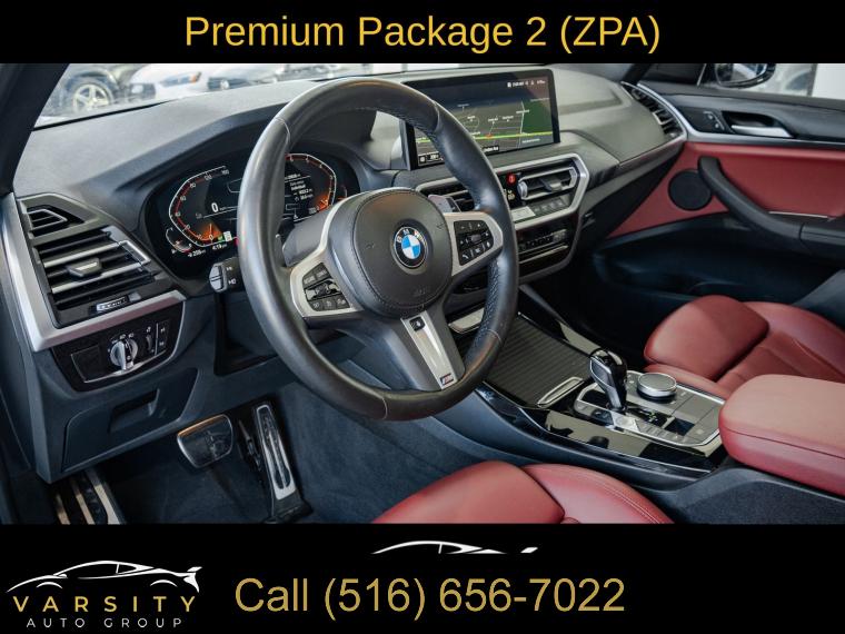 The Price you See, is the Price You Pay!!!, M Sport Package, 8-Speed Automatic Sport, 12 Speakers, 4-Wheel Disc Brakes, ABS brakes, Aerodynamic Kit, Air Conditioning, AM/FM Radio, AM/FM radio: SiriusXM with 360L, Apple CarPlay & Android Auto Compatibility, Auto High-beam Headlights, Automatic temperature control, BMW Assist eCall, BMW TeleServices, Brake assist, Comfort Access Keyless Entry, Connected Package Pro, ConnectedDrive Services, Delay-off headlights, Dual front impact airbags, Dual front side impact airbags, Electronic Stability Control, Emergency communication system: BMW Assist eCall, Enhanced Bluetooth, Four wheel independent suspension, Front anti-roll bar, Front Bucket Seats, Front Center Armrest, Front dual zone A/C, Front reading lights, Garage door transmitter, Genuine wood dashboard insert, Gesture Control, Heated Front Seats, Heated Steering Wheel, Hi-Fi Sound System, Lumbar Support, M Sport Package (337), M Sport Package 2, M Steering Wheel, Memory seat, Navigation, Navigation System, Occupant sensing airbag, Outside temperature display, Overhead airbag, Panoramic Moonroof (ZPA), Passenger vanity mirror, Power door mirrors, Power driver seat, Power Front Seats, Power passenger seat, Power steering, Power windows, Premium Package 2 (ZPA), Rain sensing wipers, Rear air conditioning, Rear reading lights, Rear seat center armrest, Rear window wiper, Reinforced Brakes, Remote Engine Start, Roof rack: rails only, Roof Rails in High-Gloss Shadowline, Shadowline Exterior Trim, SiriusXM w/360L, Smoke Grey Aluminum Rhombicle Trim, Speed-sensing steering, Speed-Sensitive Wipers, Split folding rear seat, Spoiler, Sport Seats, Tachometer, Telescoping steering wheel, Tilt steering wheel, Traction control, Turn signal indicator mirrors, Wheels: 19" x 7.5" M Y-Spoke Bi-Color (Style 887M), Wheels: 19" x 7.5" Y-Spoke (Style 693), Wheels: 20" x 8.0" Fr & 20" x 9.5" Rr (Style 787M), WiFi Hotspot, Without Exterior Lines Designation. Alpine White 2022 BMW X3 xDrive30i M Sport Package AWD 8-Speed Automatic Sport 2.0L I4 TwinPower Turbo Odometer is 1249 miles below market average! 21/28 City/Highway MPG