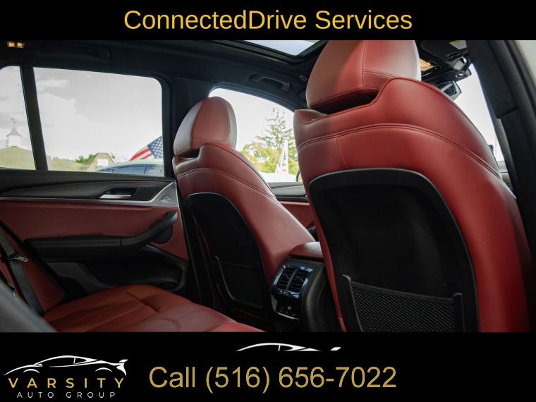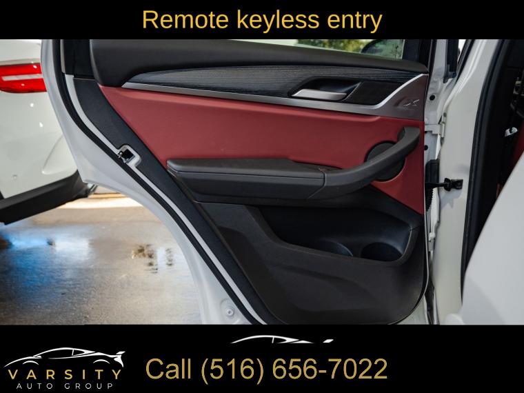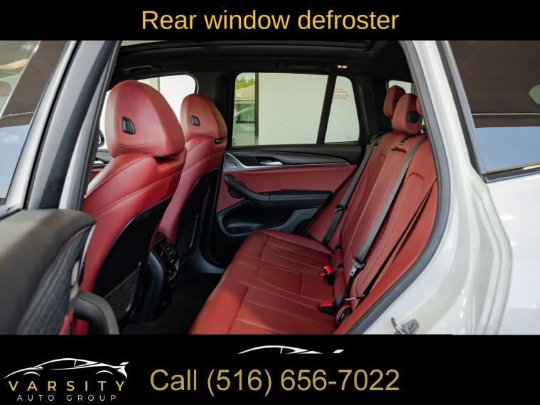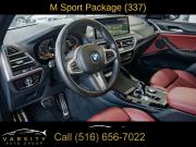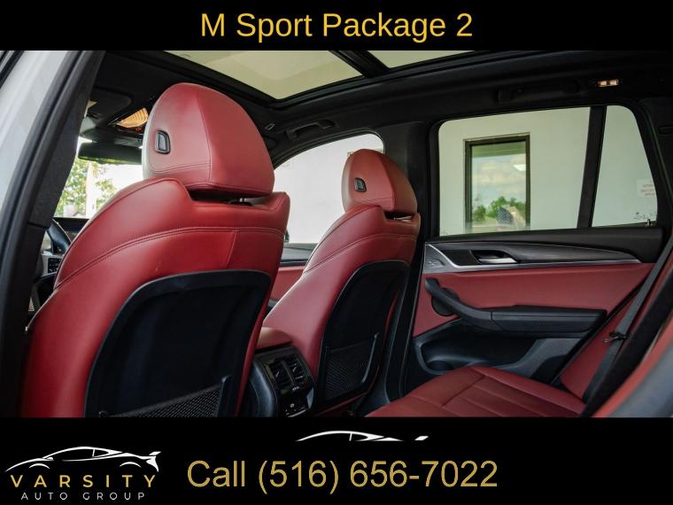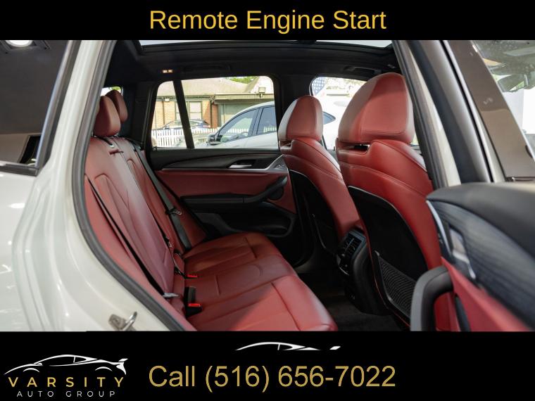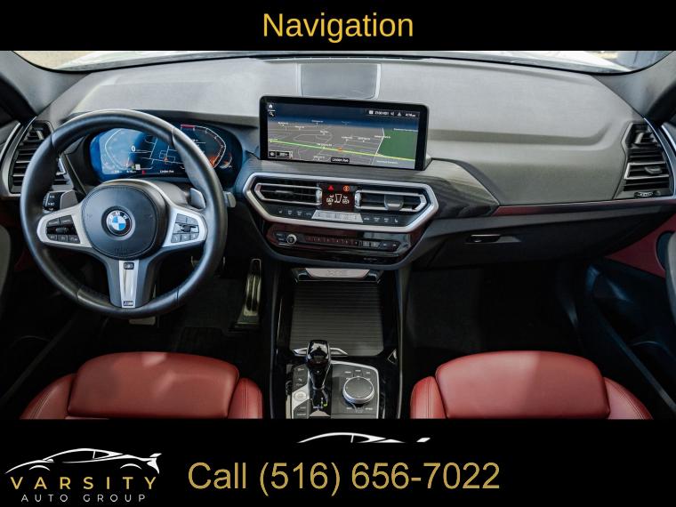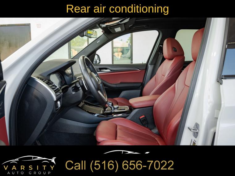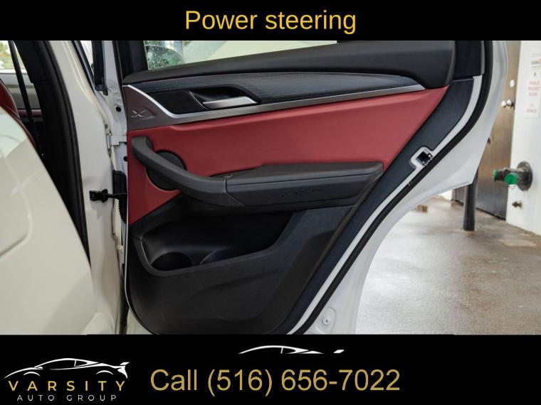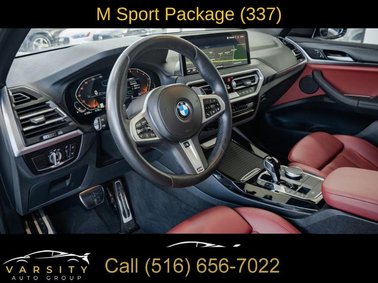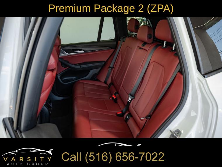 Navigation, Navigation System, Connected Package Pro, M Sport Package (337), M Sport Package 2, Premium Package 2 (ZPA), 12 Speakers, AM/FM Radio, AM/FM radio: SiriusXM with 360L, ConnectedDrive Services, Hi-Fi Sound System, Radio data system, SiriusXM w/360L, Air Conditioning, Automatic temperature control, Front dual zone A/C, Rear air conditioning, Rear window defroster, Comfort Access Keyless Entry, Lumbar Support, Memory seat, Power driver seat, Power steering, Power windows, Remote Engine Start, Remote keyless entry, Steering wheel mounted audio controls, Four wheel independent suspension, Speed-sensing steering, Traction control, 4-Wheel Disc Brakes, ABS brakes, Dual front impact airbags, Dual front side impact airbags, Emergency communication system: BMW Assist eCall, Front anti-roll bar, Knee airbag, Low tire pressure warning, Occupant sensing airbag, Overhead airbag, Rear anti-roll bar, Reinforced Brakes, Panoramic Moonroof (ZPA), Power Liftgate, Brake assist, Electronic Stability Control, Exterior Parking Camera Rear, Auto High-beam Headlights, Delay-off headlights, Fully automatic headlights, Panic alarm, Security system, Speed control, Aerodynamic Kit, Auto-dimming door mirrors, Bumpers: body-color, Heated door mirrors, Power door mirrors, Roof rack: rails only, Shadowline Exterior Trim, Spoiler, Turn signal indicator mirrors, Without Exterior Lines Designation, Apple CarPlay & Android Auto Compatibility, Auto-dimming Rear-View mirror, BMW Assist eCall, BMW TeleServices, Driver door bin, Driver vanity mirror, Enhanced Bluetooth, Fine Wood Open-Pored Ash Grain Trim, Front reading lights, Garage door transmitter, Genuine wood dashboard insert, Genuine wood door panel insert, Gesture Control, Heated Steering Wheel, Illuminated entry, Live Cockpit Pro w/Navigation, M Steering Wheel, Outside temperature display, Passenger vanity mirror, Rear reading lights, Rear seat center armrest, Smoke Grey Aluminum Rhombicle Trim, Sport steering wheel, Tachometer, Telescoping steering wheel, Tilt steering wheel, Trip computer, WiFi Hotspot, Front Bucket Seats, Front Center Armrest, Heated Front Seats, Perforated SensaTec Upholstery, Power Front Seats, Power passenger seat, Split folding rear seat, Sport Seats, Passenger door bin, Roof Rails in High-Gloss Shadowline, Trailer Hitch, Wheels: 19" x 7.5" M Y-Spoke Bi-Color (Style 887M), Rain sensing wipers, Rear window wiper, Speed-Sensitive Wipers, Variably intermittent wipers, 3.385 Axle Ratio, The Price you See, is the Price You Pay!!!, BMW X3 xDrive30i, M Sport Package, Alpine White, Tacora Red upholstery