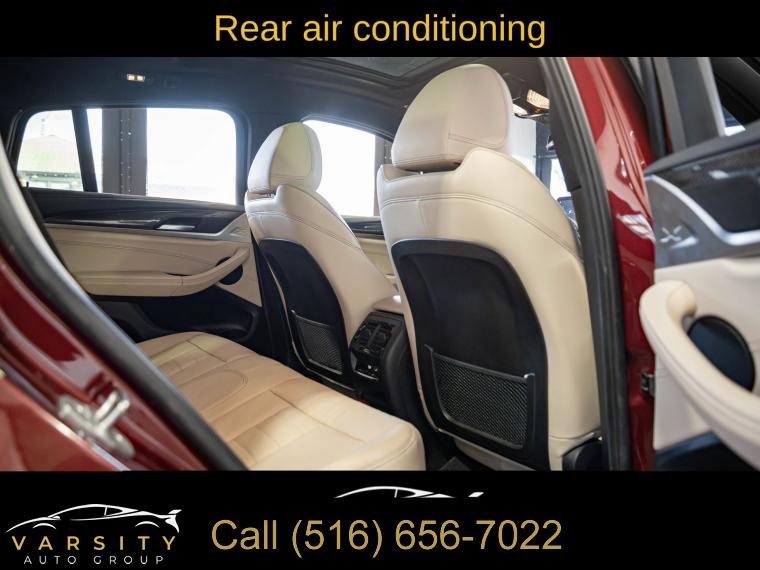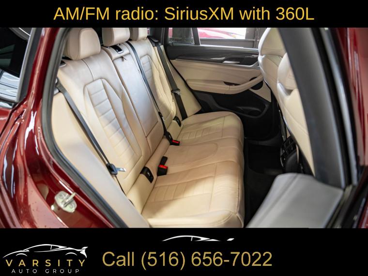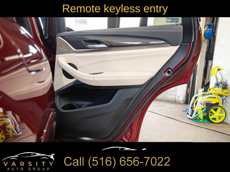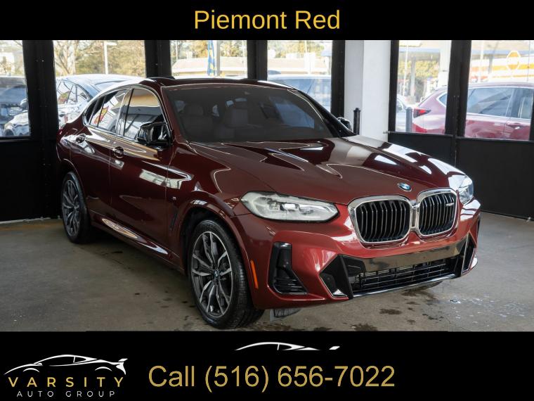 Navigation System, Connected Package Pro, 12 Speakers, AM/FM radio: SiriusXM with 360L, ConnectedDrive Services, Hi-Fi Sound System, Radio Control US, Radio data system, Radio: AM/FM Audio System, SiriusXM w/360L, Air Conditioning, Automatic temperature control, Front dual zone A/C, Rear air conditioning, Rear window defroster, Head-Up Display, Lumbar Support, Memory seat, Power driver seat, Power steering, Power windows, Remote keyless entry, Steering wheel mounted audio controls, Adaptive suspension, Four wheel independent suspension, Speed-sensing steering, Traction control, 4-Wheel Disc Brakes, ABS brakes, Anti-whiplash front head restraints, Dual front impact airbags, Dual front side impact airbags, Emergency communication system: BMW Assist eCall, Front anti-roll bar, Increased Top Speed Limiter, Knee airbag, Low tire pressure warning, Occupant sensing airbag, Overhead airbag, Rear anti-roll bar, Power moonroof: Panorama, Power Liftgate, Brake assist, Electronic Stability Control, Exterior Parking Camera Rear, Auto High-beam Headlights, Delay-off headlights, Fully automatic headlights, Panic alarm, Security system, Speed control, Auto-dimming door mirrors, Bumpers: body-color, Heated door mirrors, Power door mirrors, Spoiler, Turn signal indicator mirrors, Apple CarPlay & Android Auto Compatibility, Auto-dimming Rear-View mirror, BMW Assist eCall, BMW TeleServices, Carbon Fiber Trim, Driver door bin, Driver vanity mirror, Enhanced Bluetooth, Front reading lights, Garage door transmitter, Gesture Control, Heated Steering Wheel, Illuminated entry, Live Cockpit Pro w/Navi, Outside temperature display, Passenger vanity mirror, Rear reading lights, Rear seat center armrest, Sport steering wheel, Tachometer, Telescoping steering wheel, Tilt steering wheel, Trip computer, WiFi Hotspot, Adjustable Seat Width, Front Bucket Seats, Front Center Armrest, Heated Front Seats, Perforated SensaTec Upholstery, Power Front Seats, Power passenger seat, Split folding rear seat, Sport Seats, Passenger door bin, Alloy wheels, Wheels: 19" x 7.5" M Y-Spoke Bi-Color (Style 887M), Wheels: 20" x 8.0" Fr & 20" x 9.5" Rr (Style 787M), Rain sensing wipers, Speed-Sensitive Wipers, Variably intermittent wipers, 3.39 Axle Ratio, 2022 BMW X4 M40i, Piemont Red, Oyster w/Vernasca Leather Upholstery
