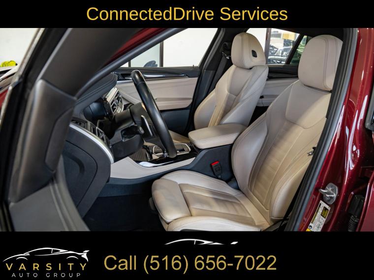 Navigation System, Connected Package Pro, 12 Speakers, AM/FM radio: SiriusXM with 360L, ConnectedDrive Services, harman/kardon Surround Sound System, Hi-Fi Sound System, Radio Control US, Radio data system, Radio: AM/FM Audio System, SiriusXM w/360L, Air Conditioning, Automatic temperature control, Front dual zone A/C, Rear air conditioning, Rear window defroster, Head-Up Display, Lumbar Support, Memory seat, Power driver seat, Power steering, Power windows, Remote keyless entry, Steering wheel mounted audio controls, Adaptive suspension, Four wheel independent suspension, Speed-sensing steering, Traction control, 4-Wheel Disc Brakes, ABS brakes, Anti-whiplash front head restraints, Dual front impact airbags, Dual front side impact airbags, Emergency communication system: BMW Assist eCall, Front anti-roll bar, Increased Top Speed Limiter, Knee airbag, Low tire pressure warning, Occupant sensing airbag, Overhead airbag, Rear anti-roll bar, Power moonroof: Panorama, Power Liftgate, Brake assist, Electronic Stability Control, Exterior Parking Camera Rear, Auto High-beam Headlights, Delay-off headlights, Fully automatic headlights, Panic alarm, Security system, Speed control, Auto-dimming door mirrors, Bumpers: body-color, Heated door mirrors, Power door mirrors, Spoiler, Turn signal indicator mirrors, Apple CarPlay & Android Auto Compatibility, Auto-dimming Rear-View mirror, BMW Assist eCall, BMW TeleServices, Carbon Fiber Trim, Driver door bin, Driver vanity mirror, Enhanced Bluetooth, Front reading lights, Garage door transmitter, Gesture Control, Heated Steering Wheel, Illuminated entry, Live Cockpit Pro w/Navi, Outside temperature display, Passenger vanity mirror, Rear reading lights, Rear seat center armrest, Sport steering wheel, Tachometer, Telescoping steering wheel, Tilt steering wheel, Trip computer, WiFi Hotspot, Adjustable Seat Width, Front Bucket Seats, Front Center Armrest, Heated Front Seats, Perforated SensaTec Upholstery, Power Front Seats, Power passenger seat, Split folding rear seat, Sport Seats, Passenger door bin, Alloy wheels, Wheels: 19" x 7.5" M Y-Spoke Bi-Color (Style 887M), Wheels: 20" x 8.0" Fr & 20" x 9.5" Rr (Style 787M), Rain sensing wipers, Speed-Sensitive Wipers, Variably intermittent wipers, 3.39 Axle Ratio, 2022 BMW X4 M40i, Piemont Red, Oyster w/Vernasca Leather Upholstery