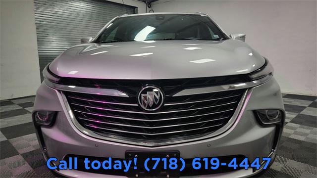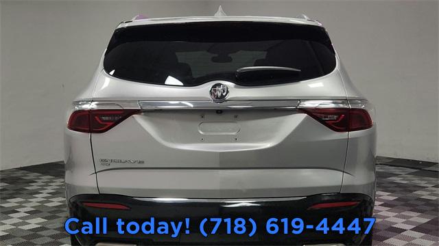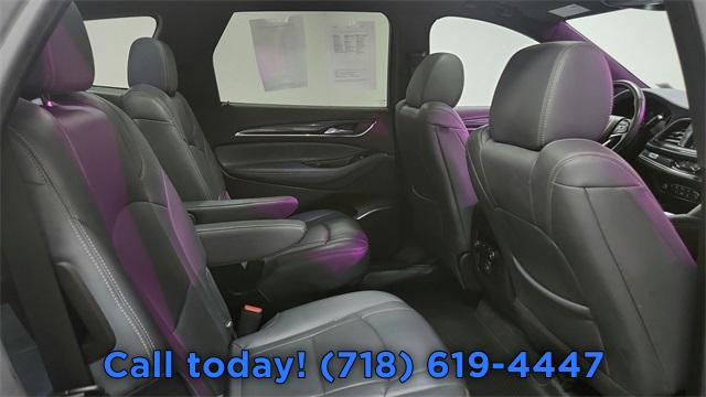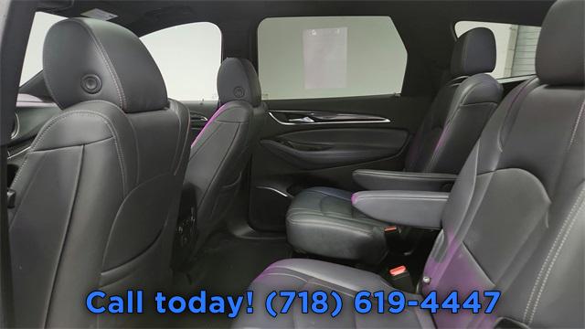 Experience Buick Package, Front Mounting License Plate Bracket Package, Preferred Equipment Group 1SL, 6 Speakers, 6-Speaker Audio System Feature, AM/FM radio: SiriusXM with 360L, Premium audio system: Buick Infotainment System, Radio data system, Radio: Buick Infotainment System AM/FM Stereo, SiriusXM w/360L, Air Conditioning, Automatic temperature control, Front dual zone A/C, Rear air conditioning, Rear window defroster, 6-Way Power Front Passenger Seat Adjuster, 8-Way Power Driver Seat Adjuster, Power driver seat, Power steering, Power windows, Remote keyless entry, Steering wheel mounted audio controls, Four wheel independent suspension, Speed-sensing steering, Traction control, 4-Wheel Disc Brakes, ABS brakes, Dual front impact airbags, Dual front side impact airbags, Emergency communication system: OnStar and Buick connected services capable, Front anti-roll bar, Low tire pressure warning, Occupant sensing airbag, Overhead airbag, Rear anti-roll bar, Front Power Sliding Moonroof, Power Liftgate, Brake assist, Electronic Stability Control, Front & Rear Park Assist, Auto High-beam Headlights, Delay-off headlights, Fully automatic headlights, Panic alarm, Security system, Speed control, Auto-dimming door mirrors, Bumpers: body-color, Heated door mirrors, Power door mirrors, Roof rack: rails only, Spoiler, Turn signal indicator mirrors, Auto-dimming Rear-View mirror, Compass, Driver door bin, Driver vanity mirror, Front reading lights, Garage door transmitter, Heated Steering Wheel, Heated steering wheel, Illuminated entry, Leather steering wheel, Outside temperature display, Overhead console, Passenger vanity mirror, Rear reading lights, Tachometer, Telescoping steering wheel, Tilt steering wheel, Trip computer, Voltmeter, Wireless Apple CarPlay/Wireless Android Auto, 3rd row seats: split-bench, 7-Passenger Seating, Front Bucket Seats, Front Center Armrest, Heated Driver & Front Passenger Seats, Heated front seats, Perforated Leather-Appointed Seat Trim, Power Driver Lumbar Control Seat Adjuster, Power Passenger Lumbar Control Seat Adjuster, Power passenger seat, Passenger door bin, 18" Aluminum Wheels, 20" Polished Aluminum Wheels, Alloy wheels, Rear window wiper, Variably intermittent wipers, 3.49 Axle Ratio