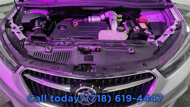Preferred Equipment Group 1SB, Safety Package, 6 Speakers, 6-Speaker Audio System, AM/FM radio: SiriusXM, Radio data system, Radio: 7" Diagonal Buick Infotainment System, SiriusXM Radio, Air Conditioning, Rear window defroster, 120-Volt Power Outlet, Power driver seat, Power steering, Power windows, Remote keyless entry, Remote Vehicle Starter System, Steering wheel mounted audio controls, Ride & Handling Suspension, Speed-sensing steering, Traction control, 4-Wheel Disc Brakes, ABS brakes, Dual front impact airbags, Dual front side impact airbags, Emergency communication system: OnStar and Buick connected services capable, Front anti-roll bar, Front wheel independent suspension, Knee airbag, Low tire pressure warning, Occupant sensing airbag, Overhead airbag, Rear side impact airbag, Brake assist, Electronic Stability Control, Exterior Parking Camera Rear, Delay-off headlights, Fully automatic headlights, Panic alarm, Security system, Speed control, Bumpers: body-color, Front License Plate Bracket, Heated door mirrors, Power door mirrors, Roof rack: rails only, Spoiler, Apple CarPlay/Android Auto, Compass, Driver door bin, Driver vanity mirror, Front reading lights, Illuminated entry, Leather steering wheel, Outside temperature display, Passenger vanity mirror, Rear Cross Traffic Alert, Rear seat center armrest, Tachometer, Telescoping steering wheel, Tilt steering wheel, Trip computer, 2-Way Manual Front Passenger Seat Adjuster, 6-Way Power Driver Seat Adjuster, Cloth w/Leatherette Seat Trim, Driver's Seat Mounted Armrest, Front Bucket Seats, Split folding rear seat, Passenger door bin, 18" Aluminum Wheels, Alloy wheels, Side Blind Zone Alert, Rear window wiper, Variably intermittent wipers, 3.53 Final Drive Axle Ratio