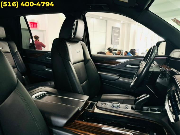 10-Speed A/T, ABS, 4-Wheel Disc Brakes, 8 Cylinder Engine, A/C, A/T, 3rd Row Seat, Adjustable Steering Wheel, Aerial View Display System, Air Suspension, Security System, AM/FM Stereo, Transmission w/Dual Shift Mode, Automatic Headlights, Automatic Highbeams, Auxiliary Audio Input, Back-Up Camera, Brake Assist, Bucket Seats, Child Safety Locks, Climate Control, Cruise Control, Driver Air Bag, Driver Adjustable Lumbar, Driver Restriction Features, Multi-Zone A/C, Auto-Dimming Rearview Mirror, Stability Control, Front Collision Mitigation, Front Collision Warning, Floor Mats, Gasoline Fuel, Hands-Free Liftgate, HD Radio, Heated Front Seat(s), Heated Mirrors, Heated Rear Seat(s), Heated Steering Wheel, Integrated Turn Signal Mirrors, Intermittent Wipers, Keyless Entry, Keyless Start, Lane Departure Warning, Lane Keeping Assist, Locking/Limited Slip Differential, Luggage Rack, Mirror Memory, MP3 Capability, Navigation System, Telematics, Pass-Through Rear Seat, Passenger Air Bag, Passenger Air Bag Sensor, Passenger Adjustable Lumbar, Power Door Locks, Power Mirror(s), Power Driver Seat, Power Folding Mirrors, Power Liftgate, Power Passenger Seat, Power Steering, Power Windows, Premium Sound System, Premium Synthetic Seats, Privacy Glass, Rain Sensing Wipers, Rear A/C, Rear Defrost, Rear Head Air Bag, Rear Wheel Drive, Remote Engine Start, Remote Trunk Release, Requires Subscription, Running Boards/Side Steps, Satellite Radio, Seat Memory, Front Side Air Bag, Front Head Air Bag, Smart Device Integration, Steering Wheel Audio Controls, Tire Pressure Monitor, Tires - Front Performance, Tires - Rear Performance, Traction Control, Tow Hitch, Transmission Overdrive Switch, Universal Garage Door Opener, Variable Speed Intermittent Wipers, Immobilizer, WiFi Hotspot, Bluetooth Connection, Active Aero Shutters, front (Deleted when (LM2) 3.0L Turbo Diesel engine is ordered.), Assist steps, running board, Door handles, Galvano accents, Door handles, illuminating, Glass, acoustic, laminated windshield, Glass, deep-tinted, Hands-Free Liftgate open and close, programmable memory height, with Cadillac branded projection light, Headlamp control, automatic leveling system, Headlamps, automatic on/off, Headlamps, LED, IntelliBeam, automatic high beam on/off, Luggage rack, roof-mounted, Chrome, Mirrors, outside heated power-adjustable power-folding, body-color, driver-side auto-dimming, integrated turn signal indicators and puddle lighting, Moldings, Galvano bodyside, Spare tire lock, hoist shaft, Tail lamps, LED illumination, Tire, spare 265/70R17SL all-season, blackwall, Tires, 275/50R22SL all-season, blackwall, Wheels, 22" (55.9 cm) 14-Spoke alloy with Bright Silver finish, Windshield, solar absorbing, Wiper, rear intermittent, Wipers, front intermittent, Rainsense, Adaptive Remote Start, Air conditioning, rear, Air filter, pollutant, odor and fine dust, Ambient lighting, interior selectable for instrument panel, doors, footwell, map pocket and door pull cups, Augmented Reality live image of what is in front of the vehicle displayed on the 14.2" diagonal Cluster Display. When a navigational route is active, the system will overlay directional information on the live image being displayed., Climate control, tri-zone automatic with individual climate settings for driver, right-front passenger and rear passengers (includes rear air vents), Console, floor with covered storage, large and small storage bins, dual cup holders, electronic climate controls and second row heated seat controls. Also includes auxiliary power outlet, USB A/C ports and 110-volt outlet, Console, overhead, Cruise control, electronic with set and resume speed, Defogger, rear-window, Door locks, power programmable with lockout protection and delayed locking, Floor covering, color-keyed carpeting, Floor mats, color-keyed carpeted first and second row, removable (Deleted when (VYW) Premium carpeted floor mats, LPO is ordered.), Keyless Open includes extended range Remote Keyless Entry, Keyless Start, push-button, Memory settings includes two "presets" for driver seat adjuster, outside mirrors and power tilt/telescoping steering column, Mirror, inside rearview auto-dimming, Power outlet, 110-volt, Power outlet, front auxiliary, 12-volt, located in front console (Standard with (D07) Floor console with covered storage only.), Rear Seat Reminder, Seat adjuster, driver 2-way power lumbar Beginning with production starting on November 1, 2021, vehicles will be forced to include (R6S) Not Equipped with 4-Way Driver and Front Passenger Power Lumbar, which removes 4-way driver and front passenger power lumbar. Vehicles will be equipped with 2-way driver and front passenger power lumbar. See deal, Seat adjuster, driver 8-way power, Seat adjuster, front passenger 2-way power lumbar Beginning with production starting on November 1, 2021, vehicles will be forced to include (R6S) Not Equipped with 4-Way Driver and Front Passenger Power Lumbar, which removes 4-way driver and front passenger power lumbar. Vehicles will be equipped with 2-way driver and front passenger power lumbar., Seat adjuster, front passenger 8-way power, Seat trim, Inteluxe, Seats, front bucket (Includes 12-way driver and front passenger adjustments. Beginning with production starting on November 1, 2021, vehicles will be forced to include (R6S) Not Equipped with 4-Way Driver and Front Passenger Power Lumbar, which removes 4-way driver and front passenger power lumbar. Vehicles will be equipped with 2-way driver and fr, Seats, heated driver and front passenger, Seats, heated second row outboard seats, Seats, second row bucket, power release (May substitute (ATT) second row 60/40 split-folding bench seats.), Seats, third row 60/40 split-bench, power-folding, Steering column, power tilt and telescoping, Steering wheel controls, audio, phone, cruise control Conversation Enhancement, gap distance and heated steering wheel, Steering wheel, heated, automatic, Theft-deterrent system, unauthorize