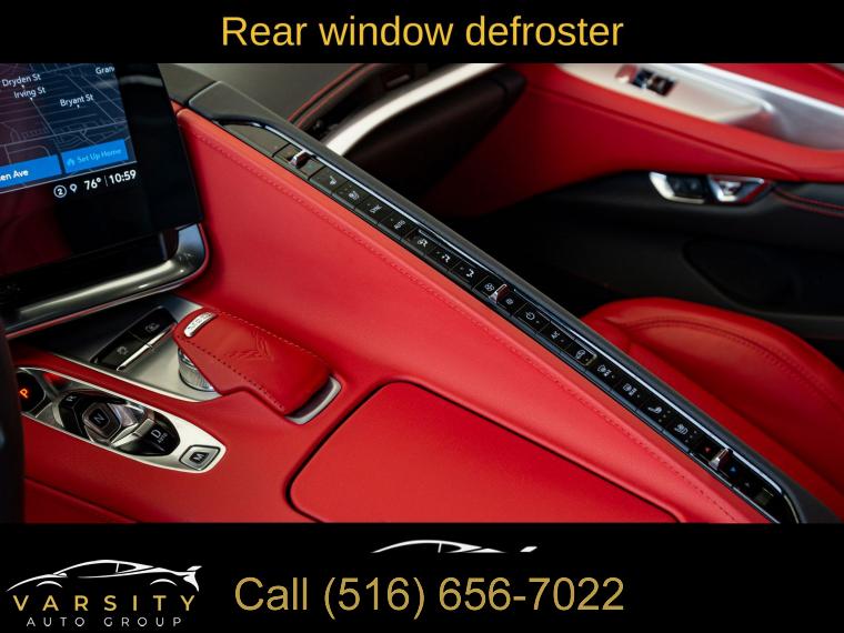 Navigation System, Memory Driver & Passenger Convenience Package, Preferred Equipment Group 2LT, Z51 Performance Package, Convertible HardTop, 14 Speakers, AM/FM radio: SiriusXM, Bose Performance Series Sound System w/14 Speakers, HD Radio, Premium audio system: Chevrolet Infotainment 3 Premium, Radio data system, Radio: Chevrolet Infotainment 3 Premium System, SiriusXM Radio, Air Conditioning, Automatic temperature control, Front dual zone A/C, Rear window defroster, Head-Up Display, Heads-Up Display, Memory seat, Power driver seat, Power steering, Power windows, Remote keyless entry, Steering wheel memory, Steering wheel mounted audio controls, Universal Home Remote, Electronic Limited-Slip Differential, Four wheel independent suspension, Speed-sensing steering, Traction control, Z51 Perf Suspension w/Magnetic Selective Ride Cntrl, 4-Wheel Disc Brakes, ABS brakes, Bright Red-Painted Calipers, Dual front impact airbags, Dual front side impact airbags, Emergency communication system: OnStar and Chevrolet connected services capable, Front anti-roll bar, Integrated roll-over protection, Low tire pressure warning, Occupant sensing airbag, Rear anti-roll bar, Z51 Performance Brakes, Brake assist, Electronic Stability Control, Performance Traction Management, Rear Park Assist, Rear Parking Sensors, Delay-off headlights, Fully automatic headlights, Electrical Theft Deterrent System, Panic alarm, Security system, Vehicle Inclination Theft Deterrent Sensor, Vehicle Interior Movement Theft Deterrent Sensor, Speed control, Heavy-Duty Cooling System, Auto-dimming door mirrors, Bumpers: body-color, Heated door mirrors, Performance Exhaust w/Stainless-Steel Tips, Power door mirrors, Power-Adjustable Outside Heated Mirrors, Rear Cross Traffic Alert, Rear Z51 Spoiler, Turn signal indicator mirrors, Z51 Performance Suspension, Apple CarPlay/Android Auto, Auto-dimming Rear-View mirror, Compass, Convertible roof lining, Driver door bin, Driver vanity mirror, Front reading lights, Garage door transmitter, GT2 Bucket Seats, HD Front & Rear Vision Cameras, Heated Steering Wheel, Heated steering wheel, Illuminated entry, Leather Shift Knob, Leather steering wheel, Not Equipped w/Rear Park Assist (DISC), Outside temperature display, Passenger vanity mirror, Performance Data & Video Recorder, Power convertible roof, Sport steering wheel, Tachometer, Telescoping steering wheel, Tilt steering wheel, Trip computer, Voltmeter, Wireless Charging for Devices, Driver Power Bolster Seat Adjuster, Front Bucket Seats, Front Center Armrest, Heated & Vented Driver & Passenger Seats, Heated front seats, Napa Lthr Seating Surfaces w/Perforated Inserts, Passenger Power Bolster Seat Adjuster, Power Driver Lumbar Control Seat Adjuster, Power Passenger Lumbar Control Seat Adjuster, Power passenger seat, Ventilated front seats, 2 Cargo Nets, Passenger door bin, Wheels: 19" x 8.5" Fr/20" x 11" Rr Carbon Flash, Glass rear window, Side Blind Zone Alert, Variably intermittent wipers, Performance Rear Axle Ratio, The Price you See, is the Price You Pay!!!, Low Miles, Clean CARFAX, GT2 Bucked Seats, Adrenaline Red