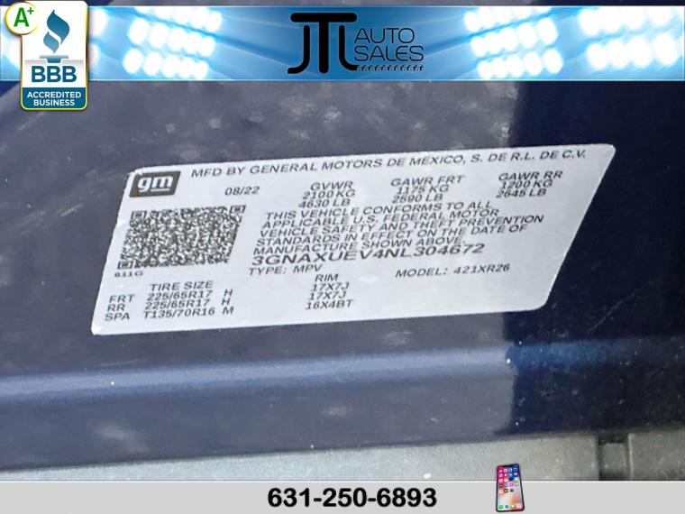 For more information on this 2022 Chevrolet Equinox, please call JTL Auto Sales at (631) 250-6893 or with the contact form on this page. This vehicle's vin number is 3GNAXUEVANL304672 and is recorded as being in stock at JTL Auto Sales at 504 Middle Country Rd in Selden. See all cars from this dealership.