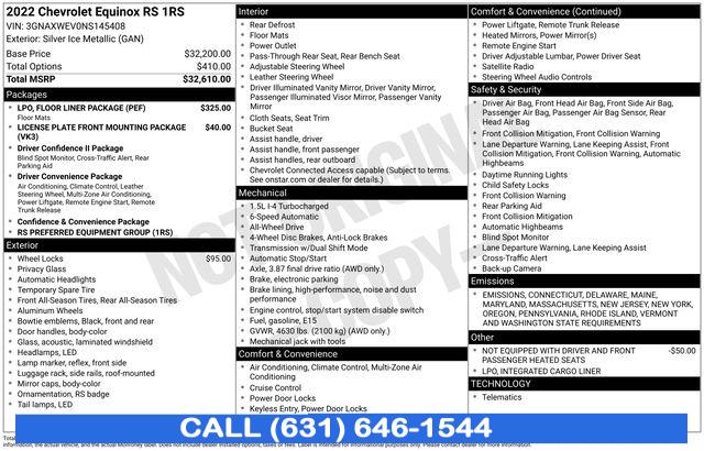 CARFAX One-Owner. Clean CARFAX. 2022 Chevrolet Equinox Silver Ice Metallic AWD, 8-Way Power Driver Seat Adjuster, Bluetooth® For Phone, Fully automatic headlights, Heated front seats, Power Liftgate, Preferred Equipment Group 1RS, Security system, SiriusXM Radio, Wireless Apple CarPlay/Wireless Android Auto. Odometer is 14992 miles below market average! 25/30 City/Highway MPG Priced below KBB Fair Purchase Price!