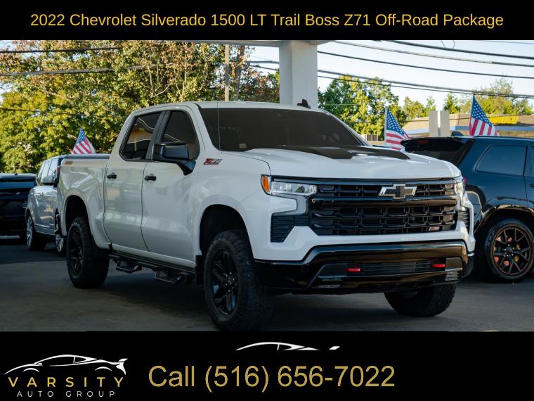 Convenience Package, Preferred Equipment Group 2LT, Protection Package, Suspension Package, Trailering Package, 6 Speakers, 6-Speaker Audio System, AM/FM radio: SiriusXM with 360L, Dual Rear USB Ports (Charge Only), Premium audio system: Chevrolet Infotainment 3 Premium, Radio data system, Radio: Chevrolet Infotainment 3 Premium System, SiriusXM w/360L, Steering Wheel Audio Controls, Wireless Phone Projection, Air Conditioning, Automatic temperature control, Dual-Zone Automatic Climate Control, Electric Rear-Window Defogger, Front dual zone A/C, Rear window defroster, 120-Volt Bed Mounted Power Outlet, 120-Volt Instrument Panel Power Outlet, Bluetooth® For Phone, EZ Lift Power Lock & Release Tailgate, Power driver seat, Power Front Windows w/Driver Express Up/Down, Power Front Windows w/Passenger Express Down, Power Rear Windows w/Express Down, Power steering, Power windows, Remote keyless entry, Remote Vehicle Starter System, Steering wheel mounted audio controls, Auto-Locking Rear Differential, Manual Tilt/Telescoping Steering Column, Speed-sensing steering, Traction control, 4-Wheel Disc Brakes, ABS brakes, Dual front impact airbags, Dual front side impact airbags, Electrical Steering Column Lock, Front anti-roll bar, Front wheel independent suspension, Keyless Open & Start, Low tire pressure warning, Not Equipped w/Steering Column Lock, Occupant sensing airbag, Overhead airbag, Brake assist, Electronic Stability Control, Hill Descent Control, Auto High-beam Headlights, Delay-off headlights, Front fog lights, Fully automatic headlights, Panic alarm, Security system, Theft Deterrent System (Unauthorized Entry), Electronic Cruise Control, Speed control, 220 Amp Alternator, Heavy-Duty Air Filter, Chevytec Spray-On Black Bedliner, Front LED Fog Lamps, Heated door mirrors, Heated Power-Adjustable Outside Mirrors, High Gloss Black Mirror Caps, IntelliBeam Automatic High Beam On/Off, LED Cargo Area Lighting, Power door mirrors, Rear step bumper, Rear Wheelhouse Liners, 12.3" Multicolor Reconfigurable Digital Display, All-Weather Floor Liner (LPO) (AAK), Apple CarPlay/Android Auto, Automatic Emergency Braking, Chevrolet Connected Access Capable, Color-Keyed Carpeting Floor Covering, Compass, Driver door bin, Driver vanity mirror, Following Distance Indicator, Forward Collision Alert, Front Pedestrian Braking, Front reading lights, HD Rear Vision Camera, Heated Steering Wheel, Illuminated entry, Inside Rear-View Mirror w/Tilt, Lane Keep Assist w/Lane Departure Warning, Leather Wrapped Steering Wheel, OnStar & Chevrolet Connected Services Capable, Outside temperature display, Overhead console, Passenger vanity mirror, Rear reading lights, Standard Tailgate, Tachometer, Telescoping steering wheel, Tilt steering wheel, Trip computer, Voltmeter, Wi-Fi Hot Spot Capable, 10-Way Power Driver Seat w/Lumbar, 40/20/40 Front Split-Bench Seat, Heated Driver & Front Outboard Passenger Seats, Heated front seats, Rear 60/40 Folding Bench Seat (Folds Up), Split folding rear seat, Front Center Armrest w/Storage, Passenger door bin, Hitch Guidance, Performance Red Recovery Hooks, Alloy wheels, Wheels: 18" x 8.5" Black Painted Aluminum, Deep-Tinted Glass, Variably intermittent wipers, 3.42 Rear Axle Ratio, The Price you See, is the Price You Pay!!!, 2022 Chevrolet Silverado 1500 LT Trail Boss Z71 Off-Road Package, 1 Owner, Clean CARFAX