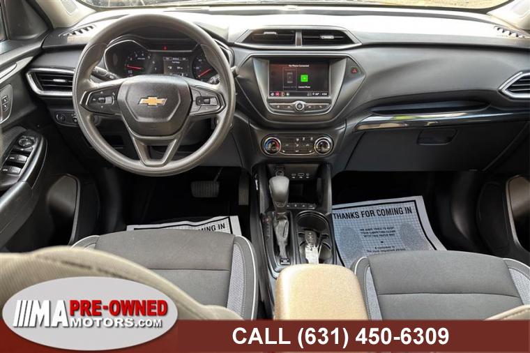 3 Cylinder Engine, ABS, 4-Wheel Disc Brakes, 9-Speed A/T, A/C, A/T, Adjustable Steering Wheel, Security System, All Wheel Drive, Aluminum Wheels, AM/FM Stereo, Transmission w/Dual Shift Mode, Automatic Headlights, Automatic Highbeams, Auxiliary Audio Input, Back-Up Camera, Bucket Seats, Child Safety Locks, Temporary Spare Tire, Cruise Control, Daytime Running Lights, Driver Air Bag, Driver Adjustable Lumbar, Driver Restriction Features, Driver Vanity Mirror, Fog Lamps, Front Collision Mitigation, Front Collision Warning, Floor Mats, Gasoline Fuel, Heated Mirrors, Keyless Entry, Keyless Start, Knee Air Bag, Lane Departure Warning, Lane Keeping Assist, MP3 Capability, Telematics, Pass-Through Rear Seat, Passenger Air Bag, Passenger Air Bag Sensor, Passenger Vanity Mirror, Power Door Locks, Power Mirror(s), Power Driver Seat, Power Steering, Power Windows, Privacy Glass, Rear Bench Seat, Rear Side Air Bag, Rear Head Air Bag, Remote Engine Start, Requires Subscription, Satellite Radio, Front Side Air Bag, Front Head Air Bag, Smart Device Integration, Steering Wheel Audio Controls, Tire Pressure Monitor, Turbocharged, WiFi Hotspot, Bluetooth Connection, Door handles, body-color, Fascia, front and rear lower insert, silver-painted, Fog lamps, front, LED, Fuel filler cap, locking, Glass, deep-tinted, rear windows and liftgate, Headlamp control, automatic on and off, Headlamps, halogen, IntelliBeam, auto high beam control, Lamp, LED center high-mounted stop/brake lamp, Liftgate, manual, Mirrors, outside heated power-adjustable, manual-folding (Body-color mirror caps.), Moldings, Anthracite lower bodyside, Ornamentation, AWD badge, Ornamentation, LT badge, Ornamentation, Trailblazer lettering, Shutters, front lower grille, active, Side rails, roof-mounted (Silver-painted.), Tail lamps, halogen, Tire, compact spare 16" (40.3 cm), Tires, 225/60R17 all-season, blackwall, Wheel, spare, 16" (40.6 cm) steel, Wheels, 17" (43.2 cm) High Gloss Black machined aluminum, Windshield, solar absorbing, Wiper, rear intermittent, Air conditioning, single-zone electronic, Air filter, cabin, Assist handle, driver, Assist handle, front passenger, Assist handle, rear outboard, Chevrolet Connected Access capable (Subject to terms. See onstar.com or dealer for details.), Compass display, Console, floor, with armrest, Cruise control, electronic with set and resume speed, Driver Information Center, 3.5" diagonal monochromatic display, Floor mats, front (Deleted when the following LPOs are ordered: PCN, RIA, VAV, VYW.), Floor mats, rear (Deleted when the following LPOs are ordered: PCN, RIA, VAV, VYW.), Head restraints, front, 2-way adjustable, Head restraints, rear outboard, 4-way adjustable, Heater, electric, heater defroster system, reinforced (Included and only available with (L3T) 1.3L Turbo engine and FWD. Standard on AWD.), Heating ducts, under front seats, rear vent, Key system, 2 key fobs, Keyless Open, front doors includes extended range Remote Keyless Entry; passive entry system can still be programmed to unlock all doors at once with one press or with two presses of the front door buttons, Knee bolster, driver and front passenger, Lighting, interior, overhead courtesy and dual reading lamp, Lighting, interior, roof, rear courtesy, Lighting, rear cargo compartment lamp, Map pocket, driver seatback, Map pocket, front passenger seatback, lateral mesh, Mirror, inside rearview manual day/night, Remote Start, Seat adjuster, driver 2-way power lumbar, Seat adjuster, driver 8-way power, Seat adjuster, front passenger 4-way manual, Seat trim, Cloth, Seat, rear 40/60 split-bench, folding (60 percent on passenger side), Seatback, front passenger flat-folding, Seats, front bucket, Seats, heated driver and front passenger (Vehicles built prior to November 15, 2021 include driver and front passenger heated seats. Certain vehicles built on or after November 15, 2021, will be forced to include (00V) Not Equipped with Driver and Front Passenger Heated Seats, which removes driver and front passenger heated seats. See dealer for de, Shift knob, satin silver and chrome, Steering column, tilt and telescopic, Steering wheel controls mounted audio, Driver Information Center, Forward Collision Alert gap adjust and phone interface controls, Steering wheel, polyurethane 3-spoke, Theft-deterrent system, electrical, unauthorized entry, USB ports and auxiliary input jack one type-A USB, one type-C USB, and one auxiliary input jack, Vehicle health management provides advanced warning of vehicle issues, Visors, driver and front passenger vanity mirrors, covered, sliding, Windows, power with driver express-up/down and front passenger and rear express-down, Axle, 3.17 final drive ratio, Brake, electronic parking, Brakes, 4-wheel antilock, 4-wheel disc, Brakes, front and rear, electric, Driver shift control, tap-up/tap-down on shifter, Drivetrain, all-wheel drive, Engine air filtration monitor, Engine control, stop-start system, Engine control, stop-start system override, Engine, ECOTEC 1.3L I3 Turbo DOHC SIDI with Variable Valve Timing (VVT) (155 hp [115 kW] @ 5600 rpm, 174 lb-ft torque [236 N-m] @ 1600 rpm) (Available on FWD. Standard on AWD.), GVWR, 4409 lbs. (2000 kg) (AWD models.), Keyless Start, push-button, Mechanical Jack with tools, Steering, power, non-variable ratio, electric, Suspension, Ride and Handling, Trailering provisions (Included and only available with (L3T) 1.3L Turbo engine and FWD. Standard on AWD.), Transmission, 9-speed automatic, Airbags, driver and front passenger frontal and knee, seat-mounted side-impact and roof rail-mounted head-curtain for all outboard seating positions and Passenger Sensing System for front passenger (Always use seat belts and child restraints. Children are safer when properly secured in a rear seat in the appropriate child restraint. See the Owner's, Automatic Emergency Braking, Daytime Running Lamps, signature LED, Door locks, rear child security, Following Distance Indicator, Forward Collis