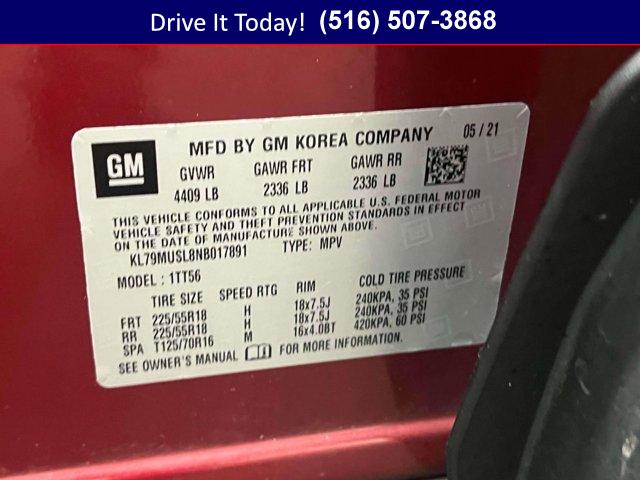 One owner. Crimson Metallic exterior and Jet Black with Red accents interior, RS trim. Heated Seats, Onboard Communications System, Satellite Radio, Back-Up Camera, All Wheel Drive, Turbo Charged, Alloy Wheels, DRIVER CONFIDENCE PACKAGE, CONVENIENCE PACKAGE, TRANSMISSION, 9-SPEED AUTOMATIC, ENGINE, ECOTEC 1.3L I3 TURBO DOHC SID. AUDIO SYSTEM, CHEVROLET INFOTAINMENT. ENGINE, ECOTEC 1.3L I3 TURBO DOHC SIDI WITH VARIABLE VALVE TIMING (VVT). Approx. Original Base Sticker Price: $27,400*.KEY FEATURES INCLUDEHeated Driver SeatOPTION PACKAGESCONVENIENCE PACKAGE includes (C68) automatic climate control air conditioning, (UIJ) 8 diagonal color touchscreen display, (USS) one type-A and one type-C charging only USB ports, (KI6) 120-volt power outlet, (DD8) inside rearview auto-dimming mirror and (DMS) driver and front passenger illuminated vanity mirrors, covered, sliding visors, DRIVER CONFIDENCE PACKAGE includes (UKC) Lane Change Alert with Side Blind Zone Alert, (UFG) Rear Cross Traffic Alert and (UD7) Rear Park Assist (Vehicles built prior to January 10, 2022 include Rear Park Assist. Certain vehicles built on or after January 10, 2022, will be forced to include (00Y) Not Equipped with Rear Park Assist, which removes Rear Park Assist. See dealer for details or the window label for the features on a specific vehicle.), AUDIO SYSTEM, CHEVROLET INFOTAINMENT 3 SYSTEM 7 diagonal color touchscreen, AM/FM stereo. Additional features for compatible phones include: Bluetooth® audio streaming for 2 active devices, voice command pass-through to phone, Apple CarPlay® and Android Auto® capable. (8 screen when (ZL3) Convenience Package and (ZL5) Driver Confidence Package or (SOR) Confidence II Package are ordered.) (STD), ECOTEC 1.3L I3 TURBO DOHC SIDI WITH VARIABLE VALVE TIMING (VVT) (155 hp [115 kW] @ 5600 rpm, 174 lb-ft torque [236 N-m] @ 1600 rpm) (STD), 9-SPEED AUTOMATIC (STD). Chevrolet RS with Crimson Metallic exterior and Jet Black with Red accents interior features a 3 Cylinder Engine with 155 HP at 5600 RPM*.EXPERTS RAVEGreat Gas Mileage: 30 MPG Hwy.OUR OFFERINGSWe hand select the finest automobiles possible, recondition as required so you do not have to worry about anything shortly down the road. Our Certified vehicles for example all have more than 50% brake life, most have brand new brakes installed front and rear and it does not end there.WESTBURY VIPAmericas #1 VIP Plus Program includes Complimentary Loaner Cars, UnlimitedOil & Filter changes for 1 yr. & then included with every factorymaintenance, Courtesy Shuttle to work, home or any other location, ExpressLube 30 minutes or less w/ no appointment necessary, Complimentary NYSI, 24/7 Rescue & Towing.