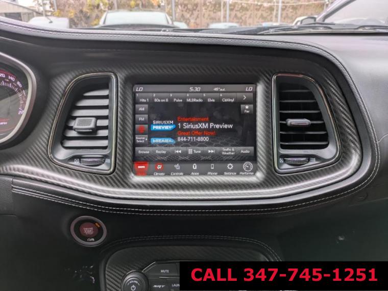 • ABS, 4-Wheel Disc Brakes, 8 Cylinder Engine, 8-Speed A/T, A/C, A/T, Active Suspension, Adjustable Steering Wheel, Security System, Aluminum Wheels, AM/FM Stereo, Transmission w/Dual Shift Mode, Automatic Headlights, Auxiliary Audio Input, Back-Up Camera, Brake Assist, Bucket Seats, Climate Control, Cruise Control, Daytime Running Lights, Driver Air Bag, Driver Illuminated Vanity Mirror, Driver Adjustable Lumbar, Driver Vanity Mirror, Multi-Zone A/C, Auto-Dimming Rearview Mirror, Stability Control, Floor Mats, Gasoline Fuel, HD Radio, Heated Front Seat(s), Heated Mirrors, Heated Steering Wheel, Intermittent Wipers, Keyless Entry, Keyless Start, Leather Steering Wheel, MP3 Capability, Telematics, Passenger Air Bag, Passenger Air Bag Sensor, Passenger Illuminated Visor Mirror, Passenger Vanity Mirror, Power Door Locks, Power Mirror(s), Power Driver Seat, Power Steering, Power Windows, Premium Sound System, Rear Defrost, Rear Head Air Bag, Rear Parking Aid, Rear Spoiler, Rear Wheel Drive, Remote Engine Start, Requires Subscription, Satellite Radio, Front Side Air Bag, Front Head Air Bag, Smart Device Integration, Steering Wheel Audio Controls, Supercharged, Tire Pressure Monitor, Tires - Front Performance, Tires - Rear Performance, Traction Control, Trip Computer, Universal Garage Door Opener, Variable Speed Intermittent Wipers, Immobilizer, WiFi Hotspot, Bluetooth Connection, Auto On/Off Projector Beam Halogen Daytime Running Headlamps w/Delay-Off, Black Grille, Black Side Windows Trim, Body-Colored Door Handles, Body-Colored Front Bumper, Body-Colored Power Heated Side Mirrors w/Manual Folding, Body-Colored Rear Bumper, Fixed Rear Window w/Defroster, Galvanized Steel/Aluminum Panels, LED Brakelights, Light Tinted Glass, Lip Spoiler, Perimeter/Approach Lights, Tire Mobility Kit, Tires: 275/40ZR20 AS Performance, Trunk Rear Cargo Access, Variable Intermittent Wipers, Wheels: 20" x 9.5" SRT Lowgloss Black Performance, 1-Yr SiriusXM Guardian Trial, 10-Way Power Driver Seat -inc: Power Height Adjustment, Fore/Aft Movement, Cushion Tilt, Manual Recline, Power 4-Way Lumbar Support and Manual Rear Seat Easy Entry, 2 12V DC Power Outlets, 4-Way Passenger Seat -inc: Manual Recline, Fore/Aft Movement and Manual Rear Seat Easy Entry, 60-40 Folding Bench Front Facing Fold Forward Seatback Cloth Rear Seat, Air Filtration, Analog Appearance, Apple CarPlay, Cargo Area Concealed Storage, Cargo Features -inc: Tire Mobility Kit, Cargo Space Lights, Carpet Floor Trim and Carpet Trunk Lid/Rear Cargo Door Trim, Cloth Door Trim Insert, Compass, Compass Gauge, Cruise Control w/Steering Wheel Controls, Day-Night Auto-Dimming Rearview Mirror, Delayed Accessory Power, Driver And Passenger Door Bins, Driver And Passenger Visor Vanity Mirrors w/Driver And Passenger Illumination, Driver And Passenger Auxiliary Mirror, Driver Foot Rest, Driver Information Center, Dual Zone Front Automatic Air Conditioning, Fade-To-Off Interior Lighting, Fixed Rear Windows, FOB Controls -inc: Keyfob Cargo Access and Keyfob Window Activation, For Details, Visit DriveUconnect.com, Front And Rear Map Lights, Front Center Armrest and Rear Center Armrest, Front Seats w/Power 4-Way Driver Lumbar, Full Carpet Floor Covering -inc: Carpet Front And Rear Floor Mats, Full Cloth Headliner, Full Floor Console w/Covered Storage, Mini Overhead Console w/Storage and 2 12V DC Power Outlets, Garage Door Transmitter, Gauges -inc: Speedometer, Odometer, Oil Pressure, Engine Coolant Temp, Oil Temperature, Trip Odometer and Trip Computer, Google Android Auto, Heated Front Seats, Heated Steering Wheel, HVAC -inc: Underseat Ducts and Console Ducts, Illuminated Front Cupholder, Illuminated Locking Glove Box, Integrated Voice Command w/Bluetooth, Interior Trim -inc: Aluminum Instrument Panel Insert, Aluminum Console Insert and Chrome/Metal-Look Interior Accents, Manual Anti-Whiplash Adjustable Front Head Restraints and Fixed Rear Head Restraints, Manual Tilt/Telescoping Steering Column, Mobile Hotspot Internet Access, Outside Temp Gauge, Perimeter Alarm, Power 1st Row Windows w/Driver And Passenger 1-Touch Down, Power Door Locks w/Autolock Feature, Proximity Key For Doors And Push Button Start, Rear Cupholder, Remote Keyless Entry w/Integrated Key Transmitter, Illuminated Entry and Panic Button, Remote Releases -Inc: Power Cargo Access, Sentry Key Immobilizer, SiriusXM Guardian Tracker System, Sport Leather/Metal-Look Steering Wheel, SRT Hellcat Logo Houndstooth Seats, Trip Computer, USB Host Flip, Valet Function, Voice Recorder, 18.5 Gal. Fuel Tank, 220 Amp Alternator, 4-Wheel Disc Brakes w/4-Wheel ABS, Front And Rear Vented Discs, Brake Assist and Hill Hold Control, 80-Amp/Hr 730CCA Maintenance-Free Battery w/Run Down Protection, Automatic w/Driver Control Ride Control Sport Tuned Adaptive Suspension, Bilstein Gas-Pressurized Shock Absorbers, Dual Stainless Steel Exhaust w/Black Tailpipe Finisher, Electric Power-Assist Speed-Sensing Steering, Engine Oil Cooler, Engine: 6.2L V8 Supercharged HO, Federal Emissions, Front And Rear HD Anti-Roll Bars, Multi-Link Rear Suspension w/Coil Springs, Rear-Wheel Drive, Short And Long Arm Front Suspension w/Coil Springs, Transmission: 8-Speed Automatic (HP90) -inc: AutoStick Automatic Transmission, Remote Start System w/Smart Key, 2.62 Rear Axle Ratio, Tip Start, Steering Wheel Mounted Shift Control, Gas Guzzler Tax, Auto Leather Wrapped Shift Knob, ABS And Driveline Traction Control, Curtain 1st And 2nd Row Airbags, Dual Stage Driver And Passenger Front Airbags, Dual Stage Driver And Passenger Seat-Mounted Side Airbags, Electronic Stability Control (ESC) And Roll Stability Control (RSC), Outboard Front Lap And Shoulder Safety Belts -inc: Rear Center 3 Point and Pretensioners, ParkSense Rear Parking Sensors, ParkView Back-Up Camera, Side Impact Beams, Tire Specific Low Tire Pressure Warning