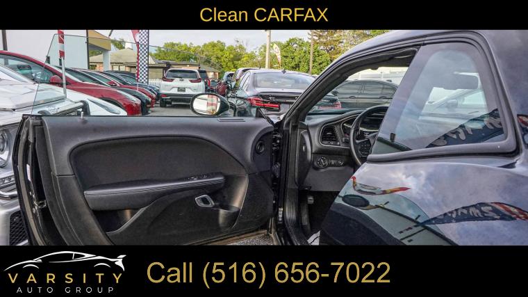 Blacktop Package, Quick Order Package 2EA, 6 Speakers, AM/FM radio, GPS Antenna Input, Integrated Center Stack Radio, Media Hub (2 USB, AUX), Radio data system, Radio: Uconnect 4 w/7" Display, SiriusXM Radio Service, SiriusXM Satellite Radio, Air Conditioning, Automatic temperature control, Front dual zone A/C, Rear window defroster, Power driver seat, Power steering, Power windows, Remote keyless entry, Steering wheel mounted audio controls, Four wheel independent suspension, Leather Performance Steering Wheel, Speed-sensing steering, Traction control, 4-Wheel Disc Brakes, ABS brakes, Anti-whiplash front head restraints, Dual front impact airbags, Dual front side impact airbags, Front anti-roll bar, Low tire pressure warning, Overhead airbag, Rear anti-roll bar, Power Sunroof, Brake assist, Electronic Stability Control, ParkView Rear Back-Up Camera, Delay-off headlights, Fully automatic headlights, Panic alarm, Security system, Speed control, Black Fuel Filler Door, Black Grille w/Bezel, Bumpers: body-color, Challenger Blacktop Grille Badge, Front License Plate Bracket, Heated door mirrors, Power door mirrors, Rear Black Spoiler, Satin Black Dodge Tail Lamp Badge, Spoiler, Apple CarPlay, Apple CarPlay/Android Auto, Auto-dimming Rear-View mirror, Compass, Compass Gauge, Driver door bin, Driver vanity mirror, For More Info, Call 800-643-2112, Front reading lights, Gloss Black I/P Cluster Trim Rings, Google Android Auto, Houndstooth Cloth Sport Seat, Illuminated entry, Integrated Voice Command w/Bluetooth, Leather Shift Knob, Outside temperature display, Overhead console, Passenger vanity mirror, Rear reading lights, Rear seat center armrest, Tachometer, Telescoping steering wheel, Tilt steering wheel, Trip computer, USB Host Flip, Front Bucket Seats, Front Center Armrest, Split folding rear seat, Passenger door bin, Alloy wheels, Wheels: 20" x 8.0" Black Noise Painted, Variably intermittent wipers, The Price you See, is the Price You Pay!!!, ONE OWNER, ORIGINAL MSRP $35025, Night Package, V6 CYLINDER ENGINE, 1-Owner, Clean CARFAX