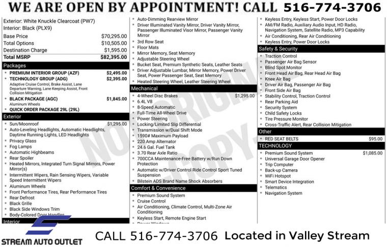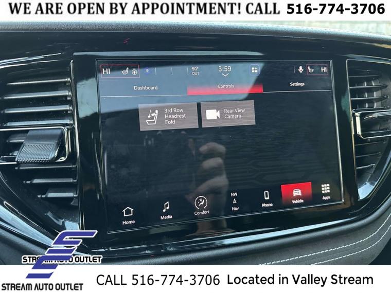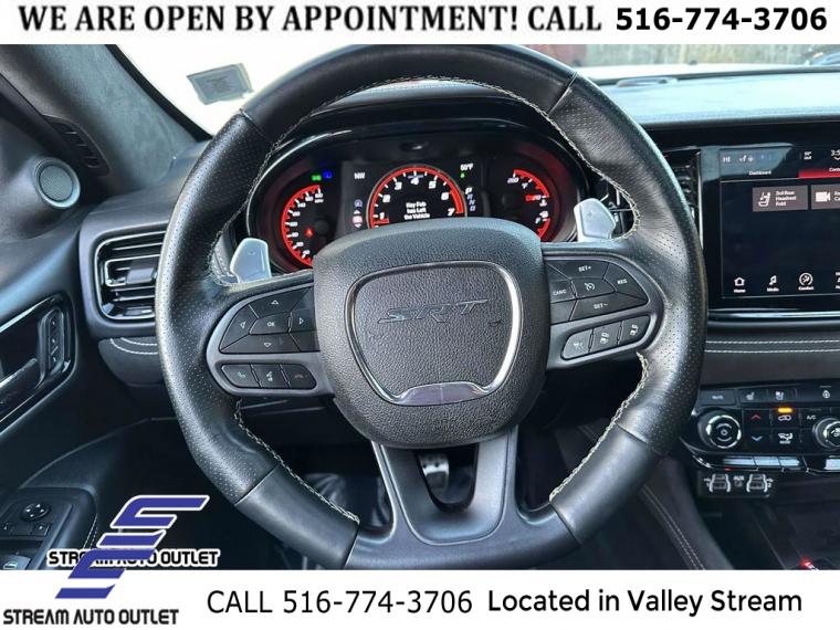 Navigation system: TomTom, Black Package, Premium Interior Group w/Demonic Red/Black, Quick Order Package 29L, Technology Group, 19 harman/kardon Amplified Speakers w/Subwoofer, 825 Watt Amplifier, 9 Speakers, AM/FM radio: SiriusXM w/360L, Audio memory, Radio data system, Radio: Uconnect 5 Nav w/10.1" Display, Air Conditioning, Automatic temperature control, Front dual zone A/C, Rear air conditioning, Rear window defroster, Memory seat, Power driver seat, Power steering, Power windows, Remote keyless entry, Steering wheel mounted audio controls, Four wheel independent suspension, Speed-sensing steering, Traction control, 2 Pc Front Rotor Red Brembo Brakes, 4-Wheel Disc Brakes, ABS brakes, Advanced Brake Assist, Anti-whiplash front head restraints, Dual front impact airbags, Dual front side impact airbags, Emergency communication system: SiriusXM Guardian, Front anti-roll bar, Knee airbag, Low tire pressure warning, Occupant sensing airbag, Overhead airbag, Rear anti-roll bar, Power Sunroof, Power Liftgate, Brake assist, Electronic Stability Control, ParkView Rear Back-Up Camera, Auto High-beam Headlights, Delay-off headlights, Front fog lights, Fully automatic headlights, Panic alarm, Red Seat Belts, Security system, Adaptive Cruise Control w/Stop, Speed control, Auto-dimming door mirrors, Body Color Exterior Mirrors, Bumpers: body-color, Eclipse Black Exhaust Tip, Gloss Black Exterior Mirrors, Gray Metallic Badges, Heated door mirrors, Power door mirrors, Satin Black Dodge Tail Lamp Badge, Spoiler, Turn signal indicator mirrors, Apple CarPlay/Android Auto, Auto-dimming Rear-View mirror, Compass, Driver door bin, Driver vanity mirror, Forged Carbon Fiber Interior Accents, Front reading lights, Full Speed Forward Collision Warning Plus, Garage door transmitter, Heated steering wheel, Illuminated entry, Lane Departure Warning Plus, Leather Shift Knob, Leather steering wheel, Monaco Wrapped Interior Accents, Outside temperature display, Overhead console, Passenger vanity mirror, Premium Instrument Panel, Rear reading lights, Sport steering wheel, Suede Headliner, Tachometer, Telescoping steering wheel, Tilt steering wheel, Trip computer, Voltmeter, 3rd row seats: split-bench, Front Bucket Seats, Heated front seats, Heated rear seats, Leather Trimmed Bucket Seats, Power passenger seat, Split folding rear seat, Ventilated front seats, Front Center Armrest w/Storage, Passenger door bin, Alloy wheels, Wheels: 20" x 10" Hyper Black Aluminum, Wheels: 20" x 10" Lights Out Aluminum, Rain sensing wipers, Rear window wiper, Speed-Sensitive Wipers, Variably intermittent wipers, 3.70 Rear Axle Ratio, * NYS INSPECTION INCLUDED *, * FULL INTERIOR / EXTERIOR DETAIL *, * BLUETOOTH *, * LIMITED NYS LEMON LAW WARRANTY INCLUDED *, *FRESH OIL CHANGE *, * 150 MULTI POINT INSPECTION *