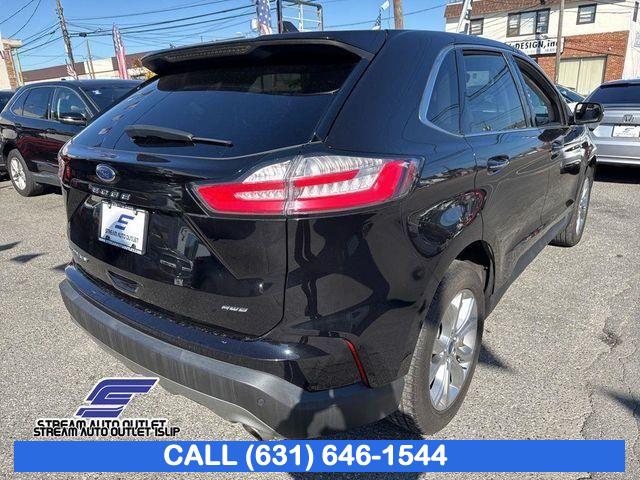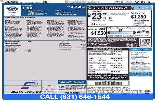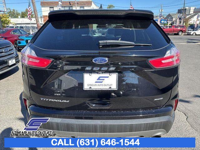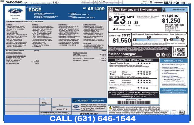 With an EPA-estimated 21 mpg in the city and 28 mpg on the highway, this Edge Titanium delivers impressive fuel efficiency without sacrificing power. The 4-wheel independent suspension and advanced safety technologies, including forward collision warning, lane-keeping assist, and automatic high-beam headlights, provide a confident and secure driving experience.