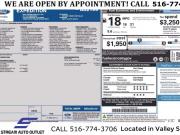 BEGIN THE SIMPLE PROCESS. PERSONALIZE THE PAYMENTS THAT FIT YOUR BUDGET, ADD YOUR TRADE-IN INFORMATION, APPLY FOR YOUR AUTO LOAN, SCHEDULE A PICKUP OR DELIVERY DATE. (HOME DELIVERY AVAILABLE*). EVERY VEHICLE HAS BEEN PRICED BELOW COST IN ORDER TO TURN INVENTORY QUICKLY AND PASS ON THE SAVINGS TO YOU! EACH VEHICLE COMES WITH A FREE LIMITED POWERTRAIN WARRANTY AND FREE CARFAX REPORT! WITH THESE SAVINGS THESE VEHICLES WONT LAST. CALL TO GET YOUR GREAT DEAL TODAY! (516) 774-3706.