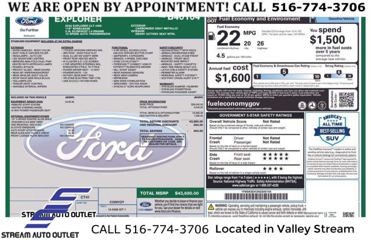 For more information on this 2022 Ford Explorer, please call Stream Auto Outlet Valley Stream at (516) 774-3706 or with the contact form on this page. This vehicle's vin number is 1FMSK8DH3NGB40104 and is recorded as being in stock at Stream Auto Outlet Valley Stream at 324 W Merrick Rd in Valley Stream. See all cars from this dealership.