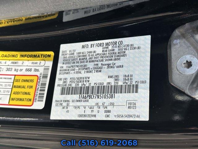For more information on this 2022 Ford Mustang, please call Certified Luxury Motors at (516) 619-2068 or with the contact form on this page. This vehicle's vin number is 1FA6P8CF7N5105381 and is recorded as being in stock at Certified Luxury Motors at 215 Northern Blvd in Great Neck. See all cars from this dealership.